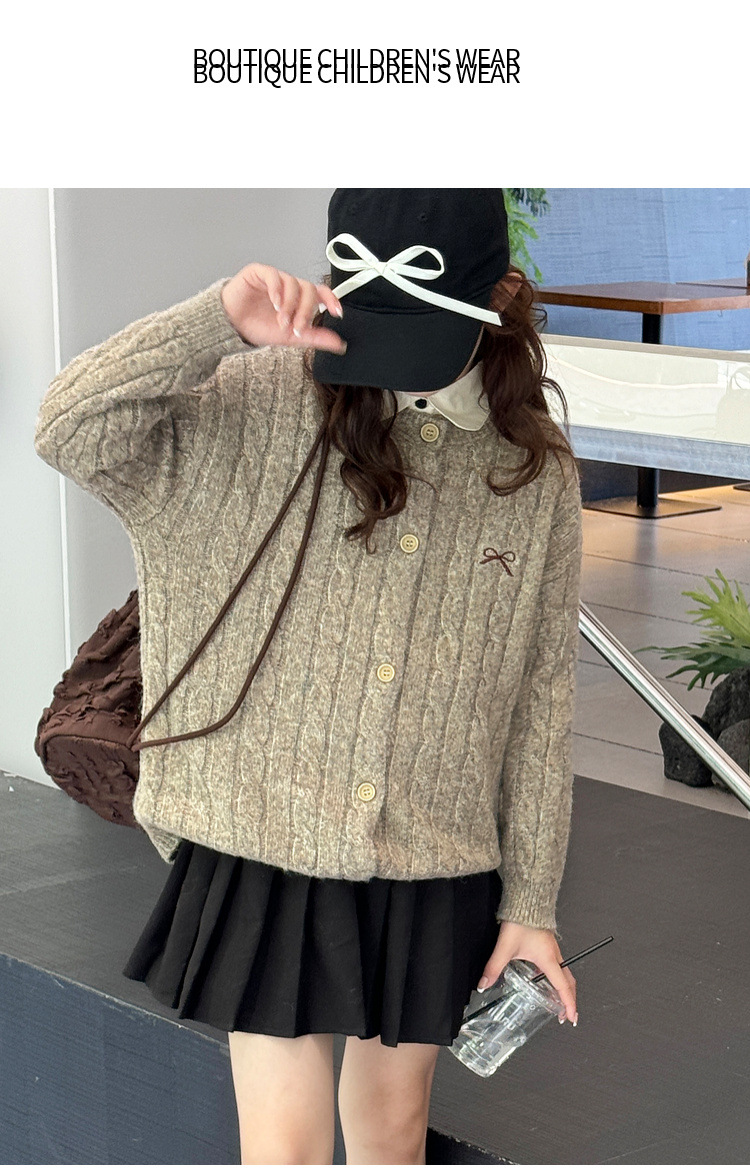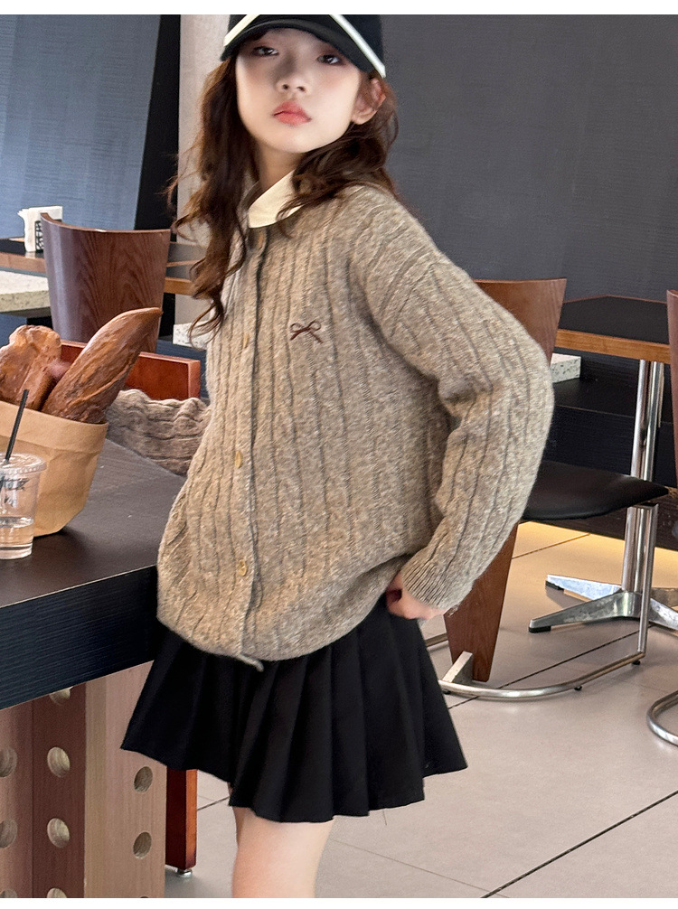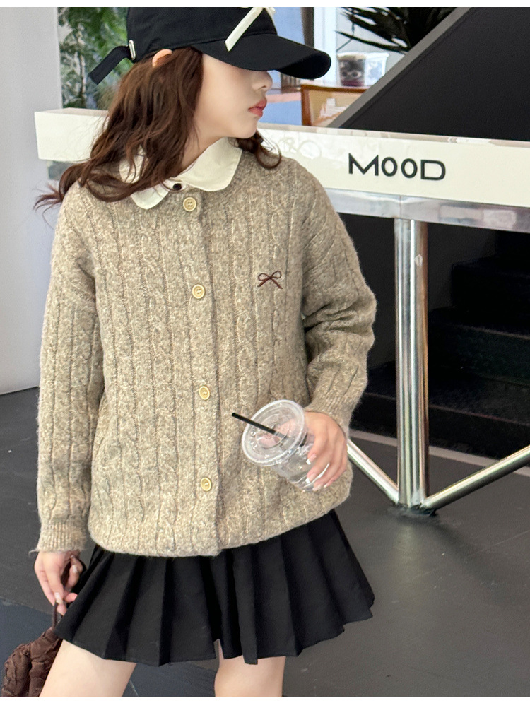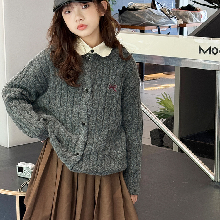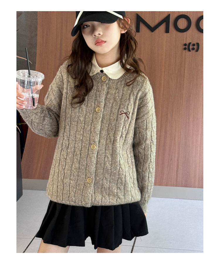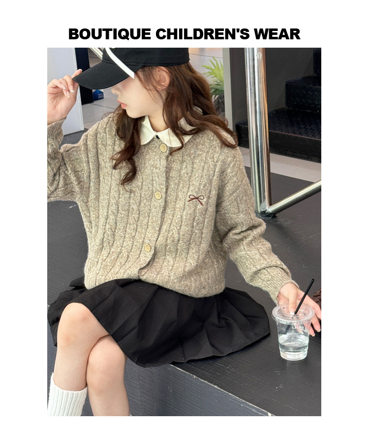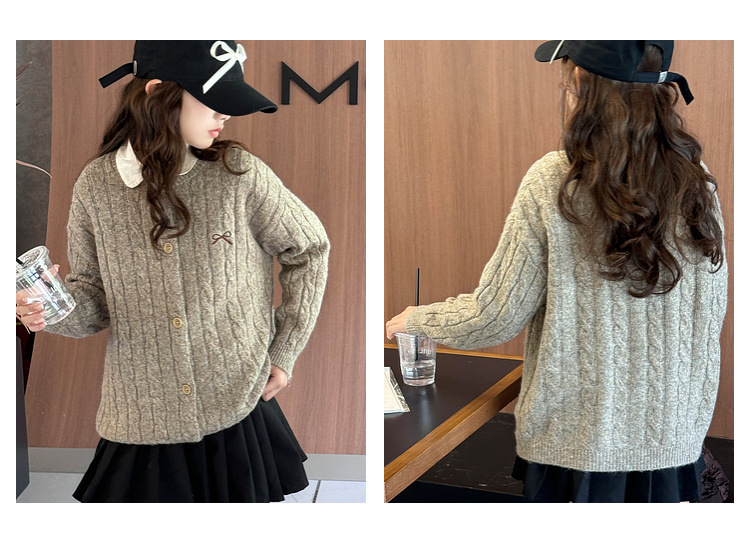 여자 니트 카디건 스웨터 재킷 2025 가을, 겨울 새로운 어린이 캐주얼 패션 트위스트 패턴 아동 의류 유행스토어 가기