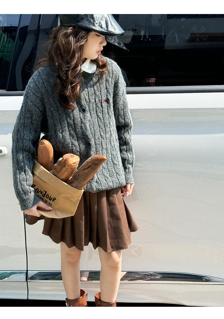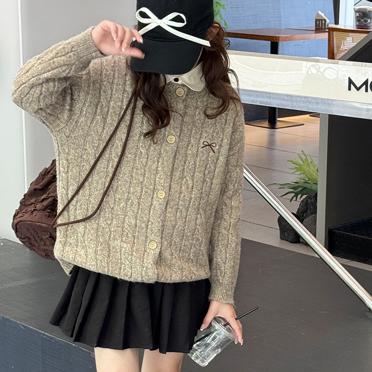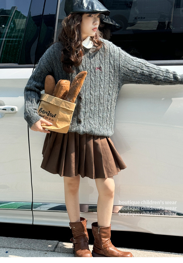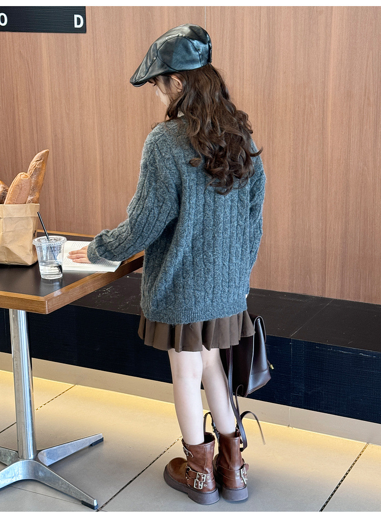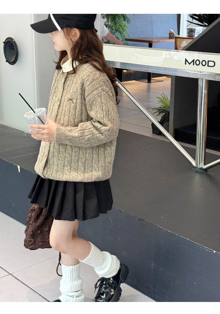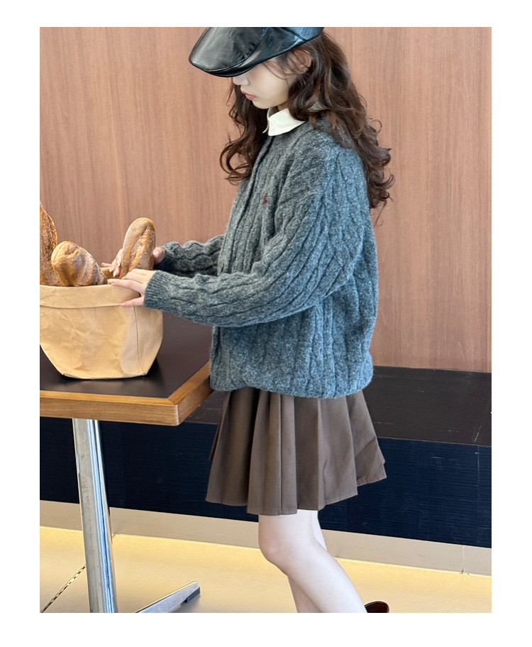 여자 니트 카디건 스웨터 재킷 2025 가을, 겨울 새로운 어린이 캐주얼 패션 트위스트 패턴 아동 의류 유행스토어 가기