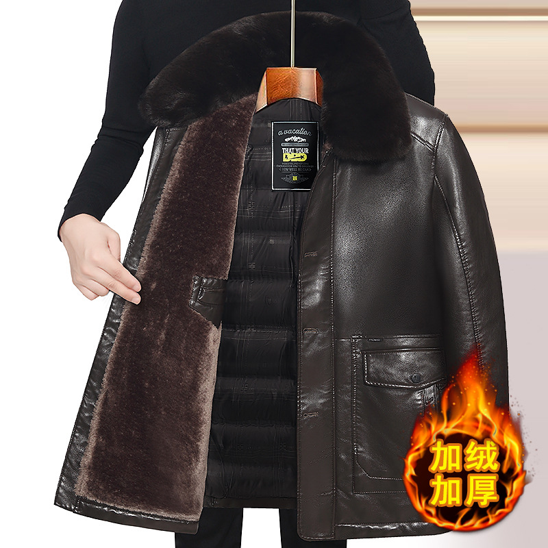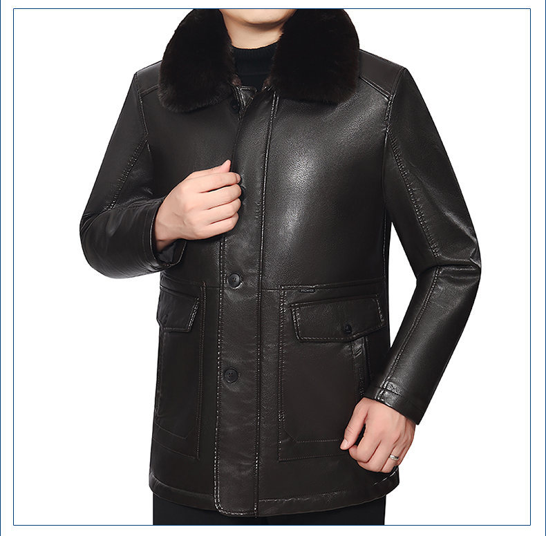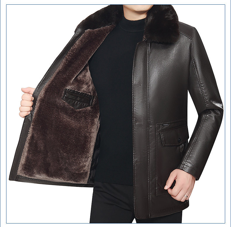 기모 두꺼운 가죽 남성의 중년 및 노인 모피 아빠의 중장 재킷 코트 라이너 기모 두껍게