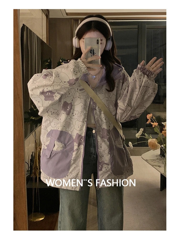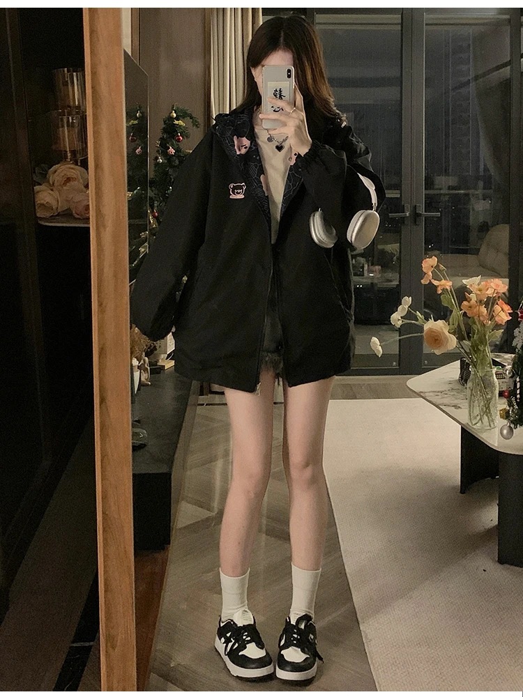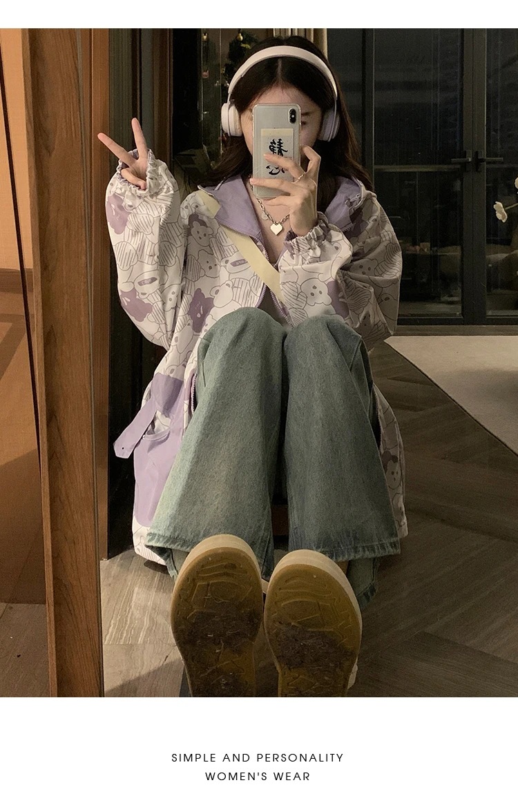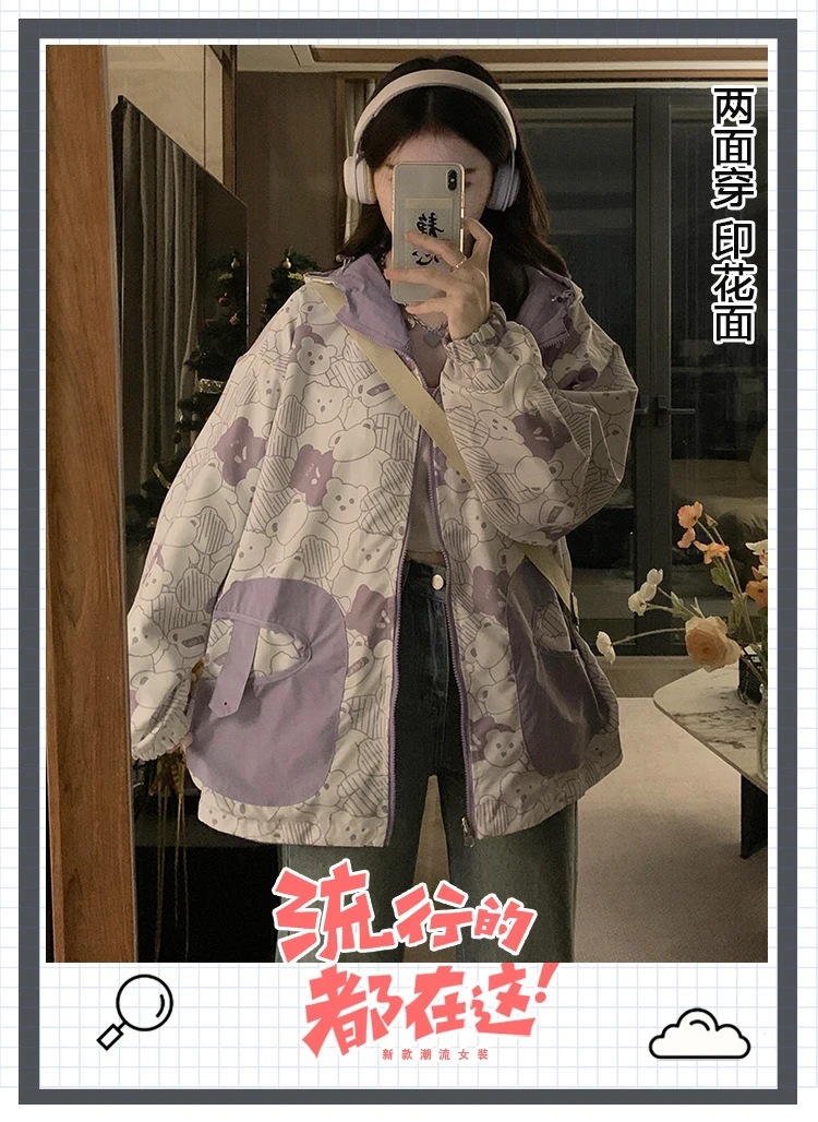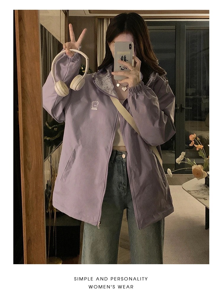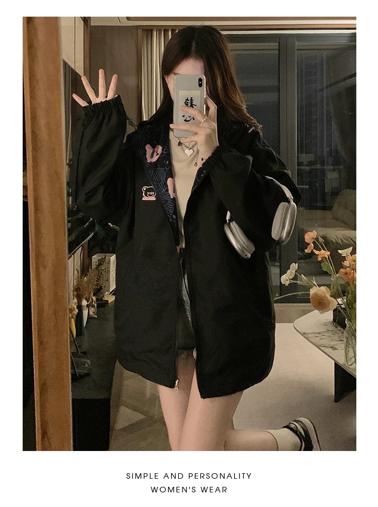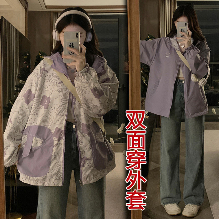 양면 재킷 소녀 2024 봄과 가을 새 중학교 고등학생 얇은 캐주얼 재킷 러시 코트 트렌치 코트스토어 가기