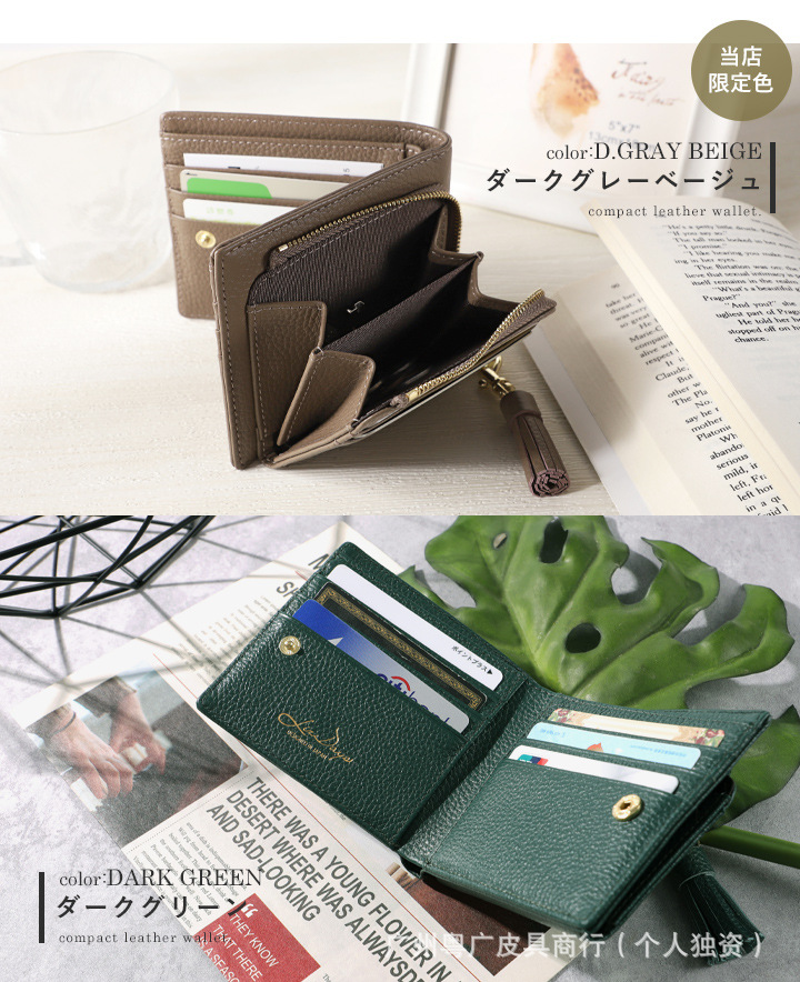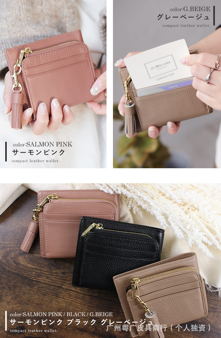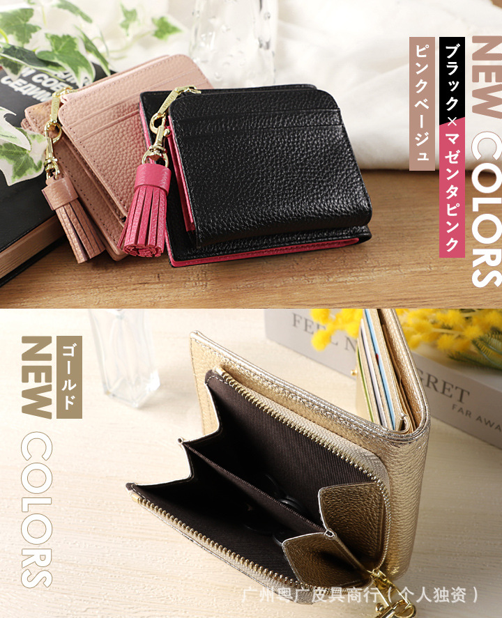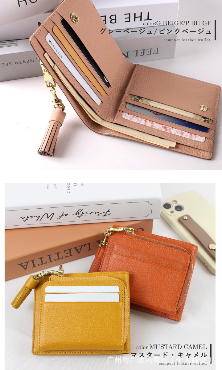 롯데 가죽 단색 대비 대용량 여성용 지갑 다기능 Cowhide 휴대용 초박형 2 배 코인 지갑스토어 가기