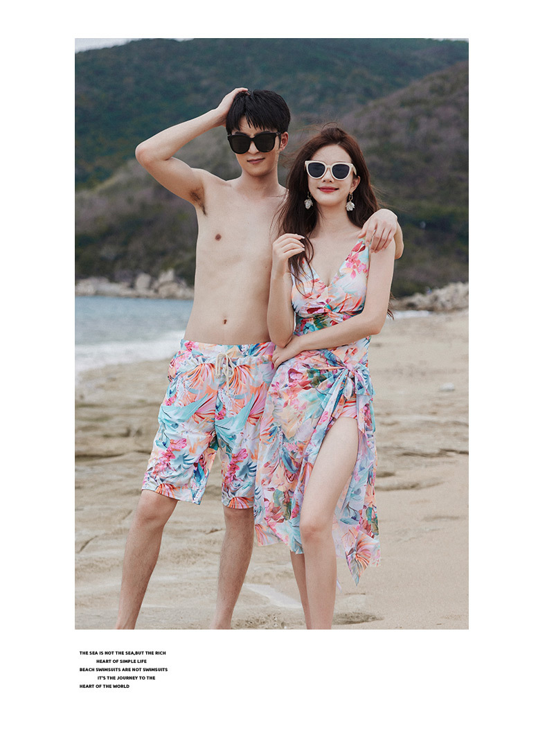 국경 간 커플 수영복 여성 보수당 원피스 벨리 커버 슬리밍 온천 해변 휴가 남성 비치 트렁크 커플 수영복