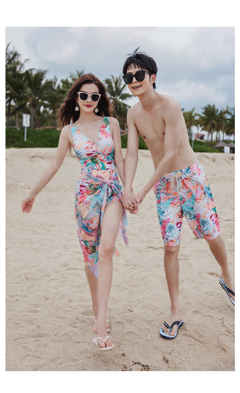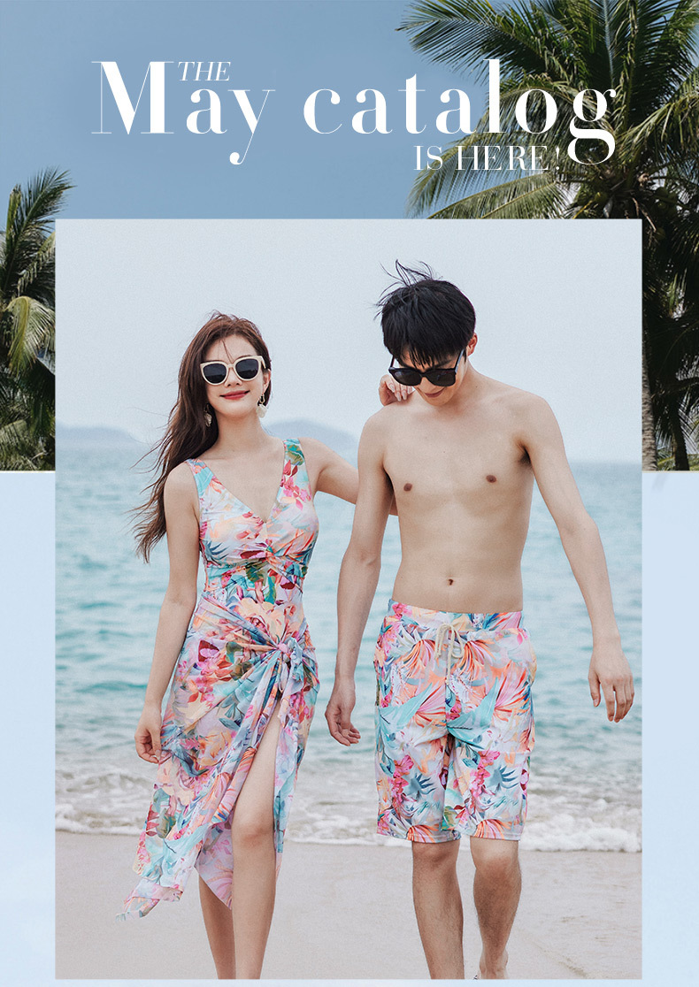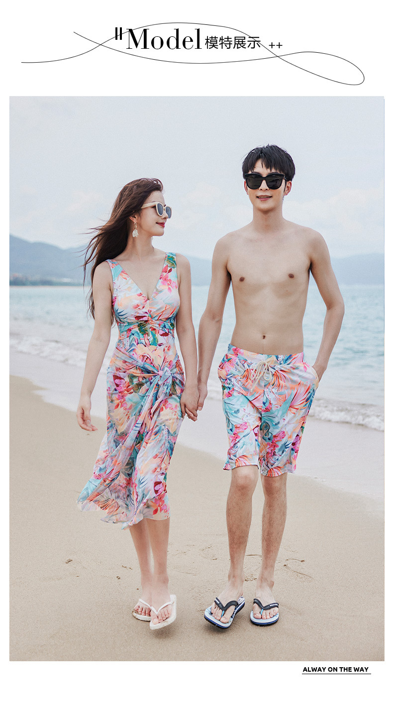 국경 간 커플 수영복 여성 보수당 원피스 벨리 커버 슬리밍 온천 해변 휴가 남성 비치 트렁크 커플 수영복스토어 가기
