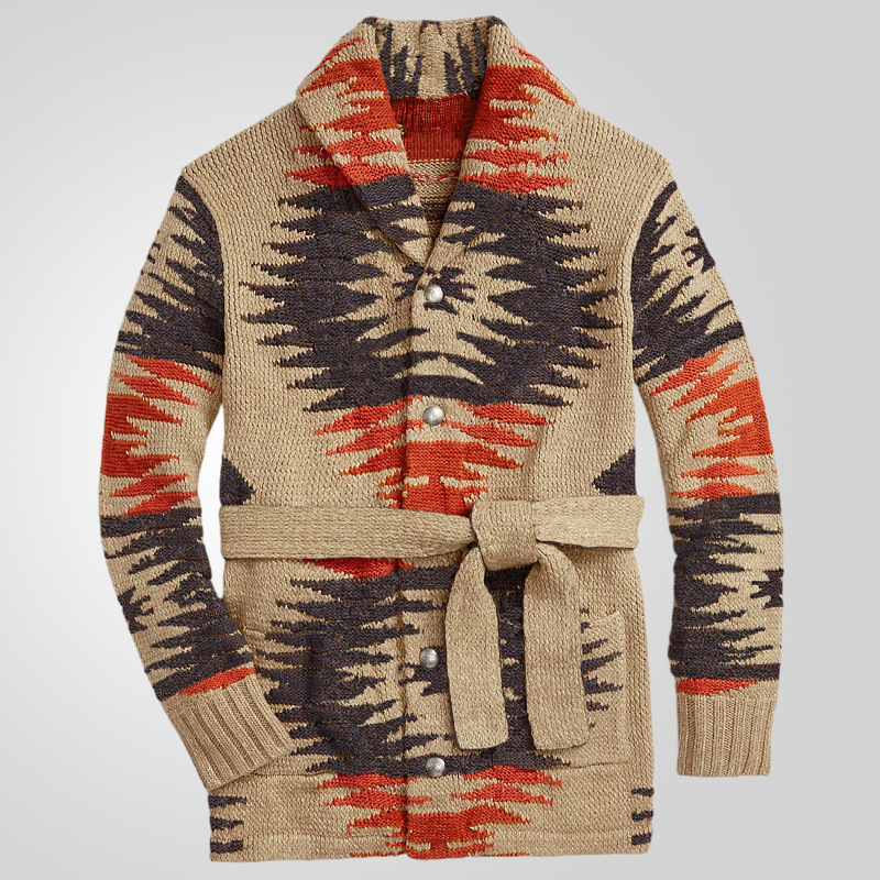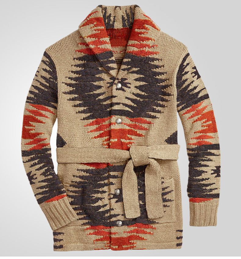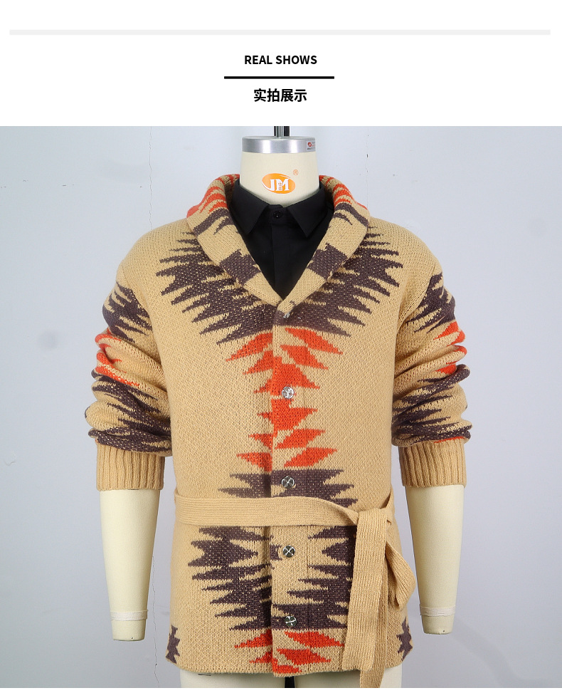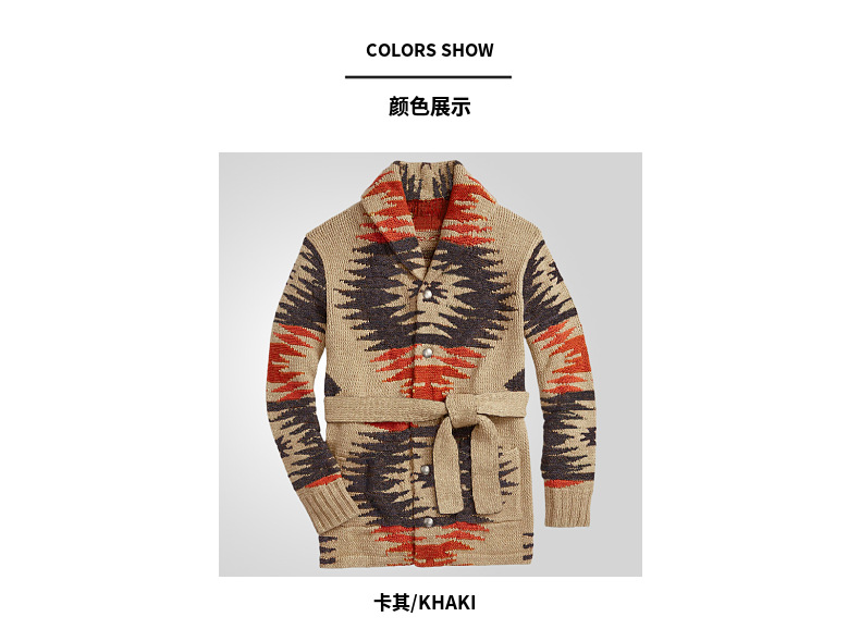국경 간 남자 유럽과 미국 남자 레트로 헤비 자카드 스웨터 중간 길이의 레이스 업 카디건 재킷 SY0114스토어 가기