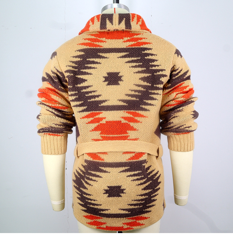 국경 간 남자 유럽과 미국 남자 레트로 헤비 자카드 스웨터 중간 길이의 레이스 업 카디건 재킷 SY0114