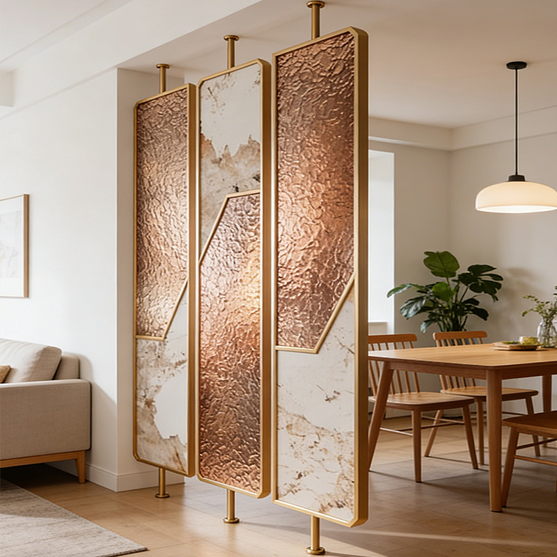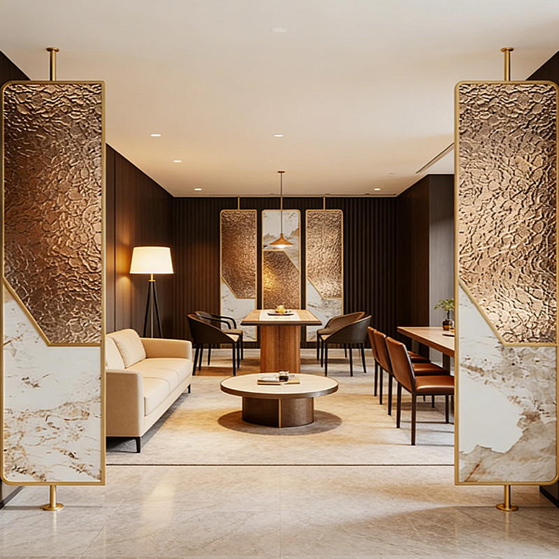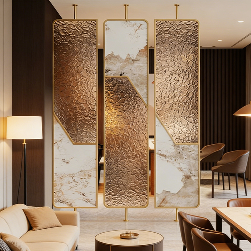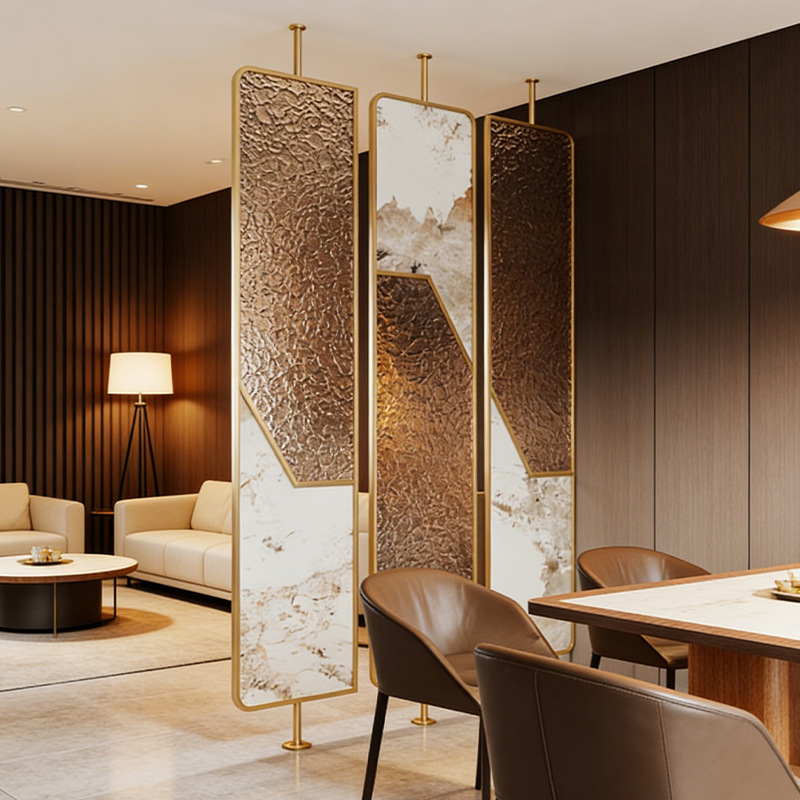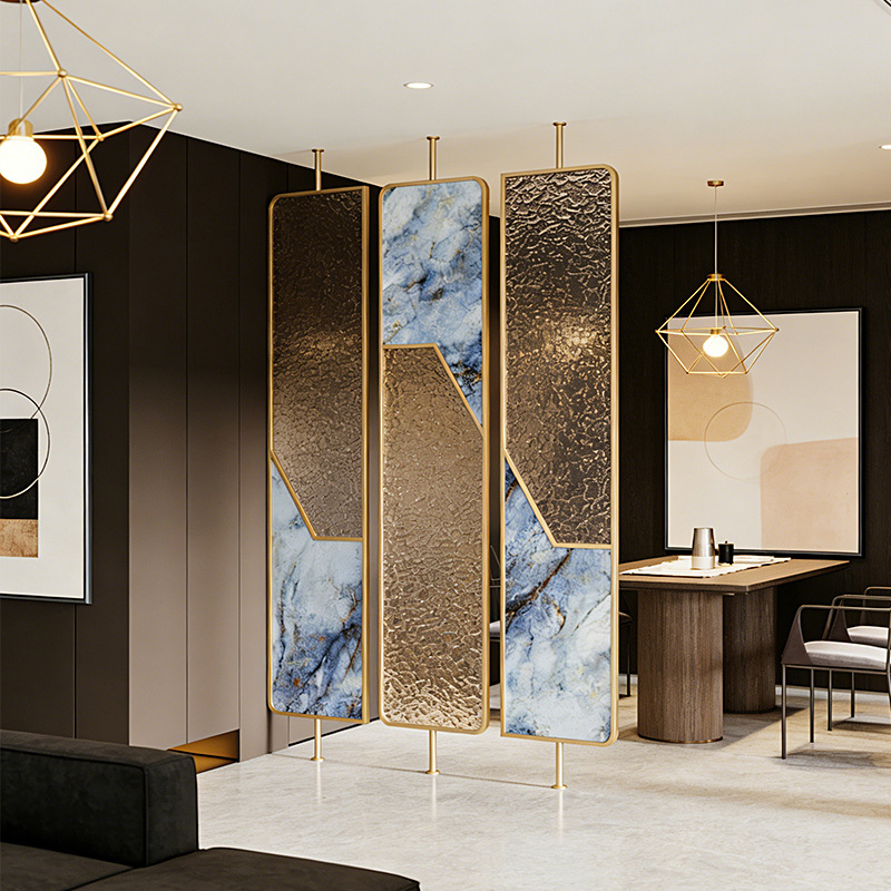 스테인리스 유리 스크린, 새로운 중국식 실내 칸막이벽, 호텔 레스토랑, 고급스러운 레이저 커팅 배경벽
