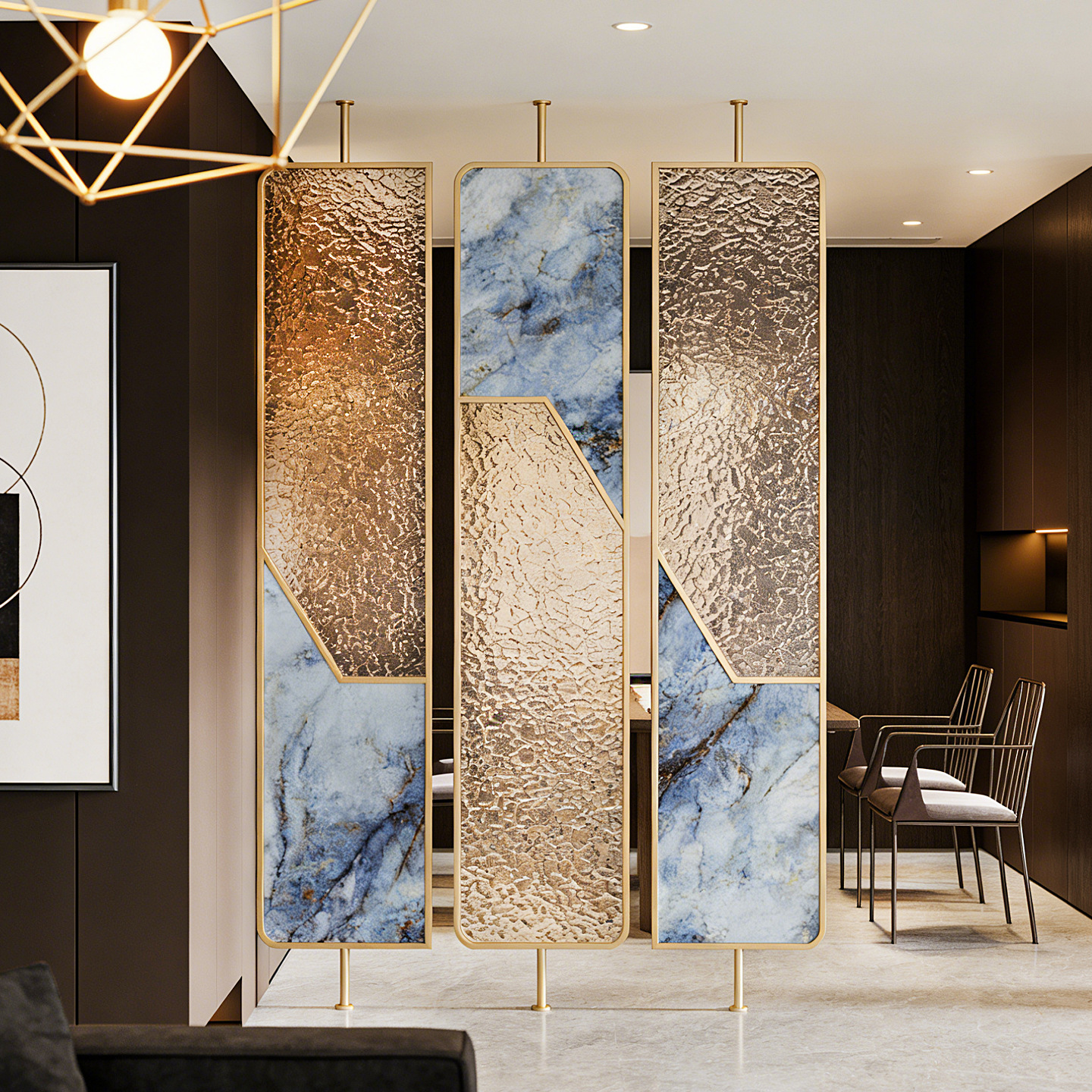 스테인리스 유리 스크린, 새로운 중국식 실내 칸막이벽, 호텔 레스토랑, 고급스러운 레이저 커팅 배경벽스토어 가기