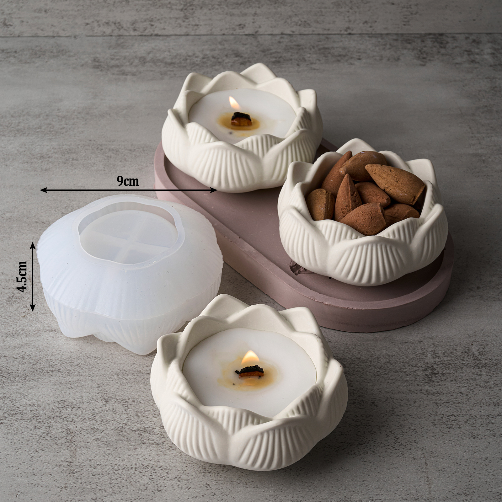 3D 연꽃 수납함 실리콘 몰드 DIY 양초통 재떨이 석고 레진 제작 창의적인 케이크