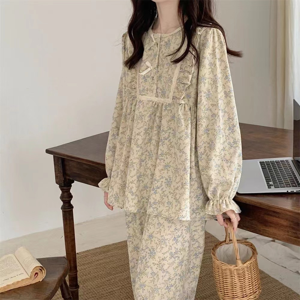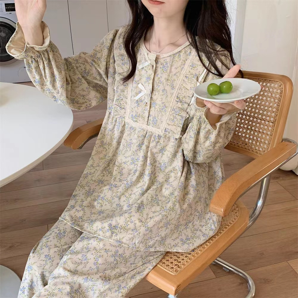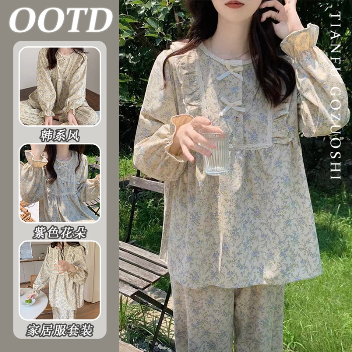 대외 무역 국경 인터넷 연예인 라이브 방송 한국식 인스타그램 스타일 파자마 여성 봄과 가을 달콤한 한국식 아웃웨어 긴 소매 홈 옷