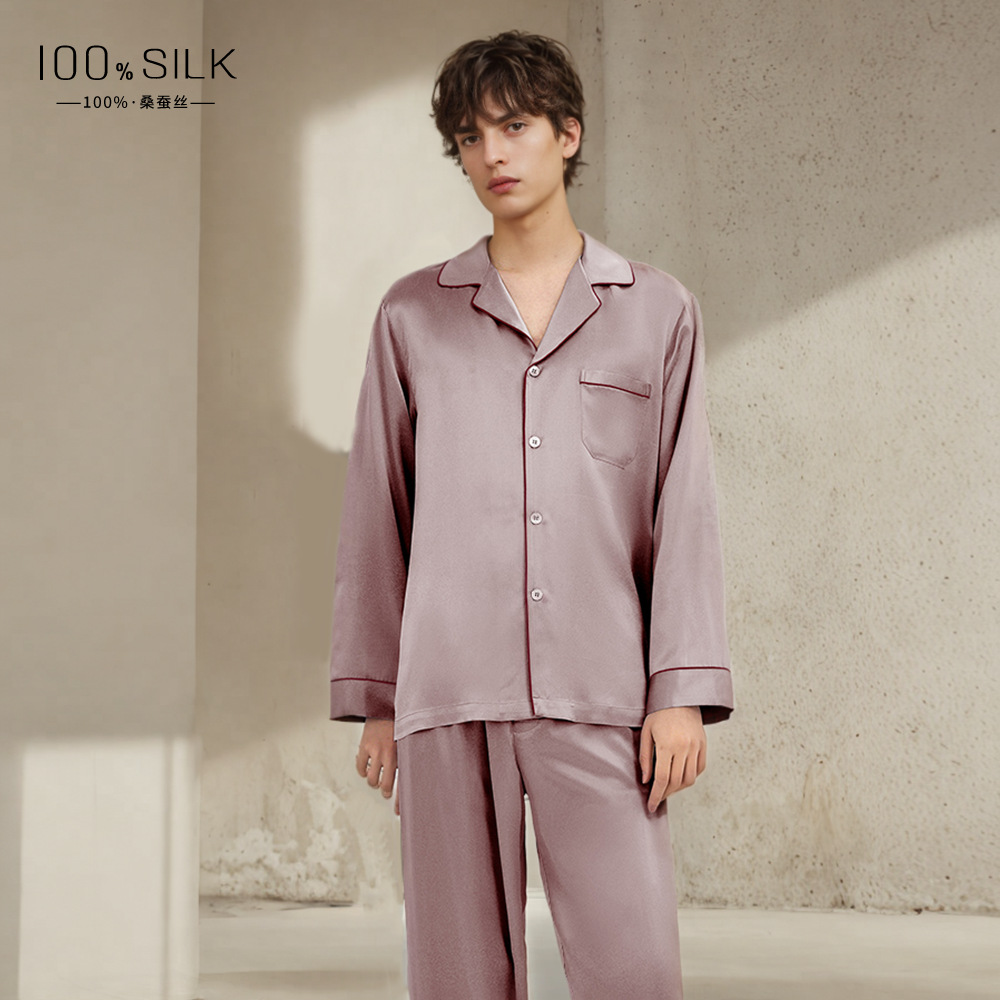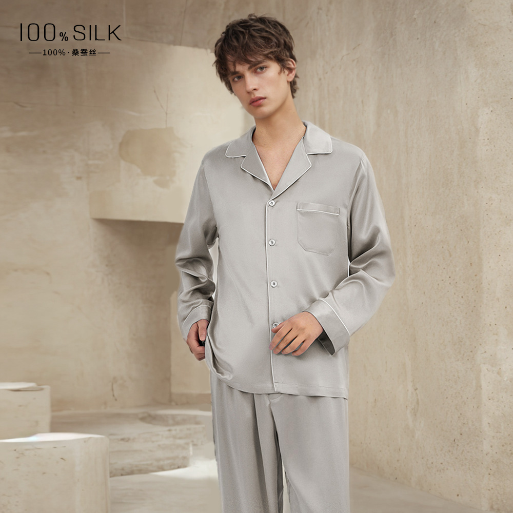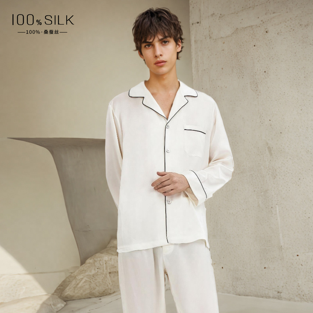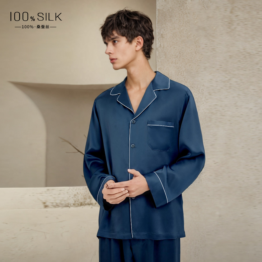 19mm 남성용 실크 잠옷, 고급 긴팔 바지 투피스 세트, 100% 뽕나무 실크 홈웨어 세트, 맞춤형스토어 가기
