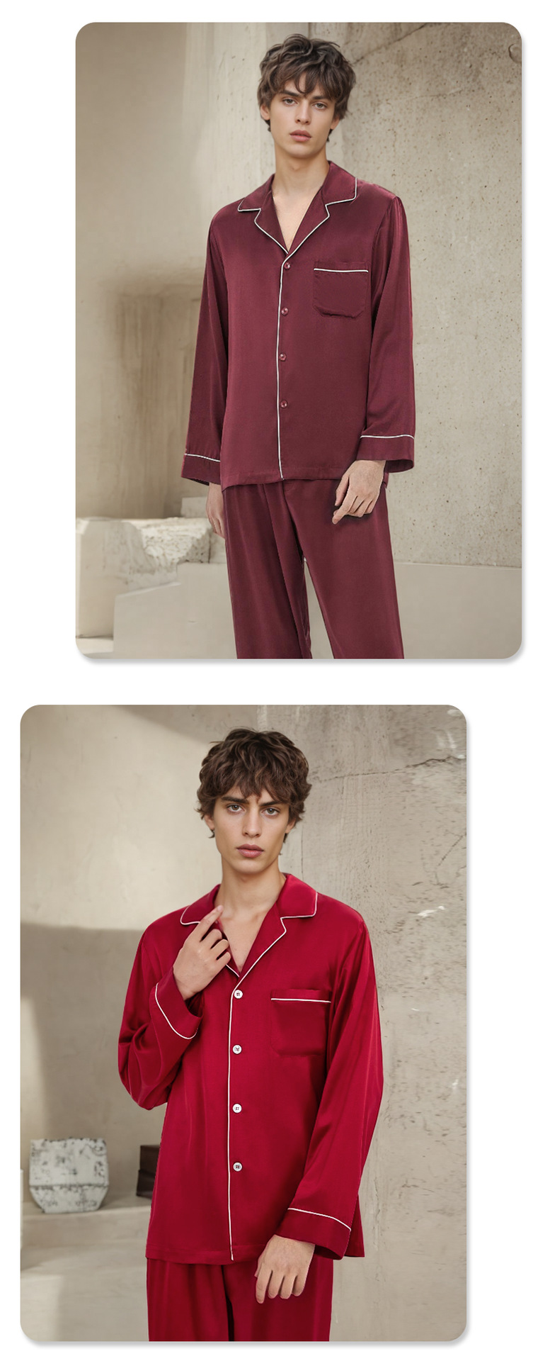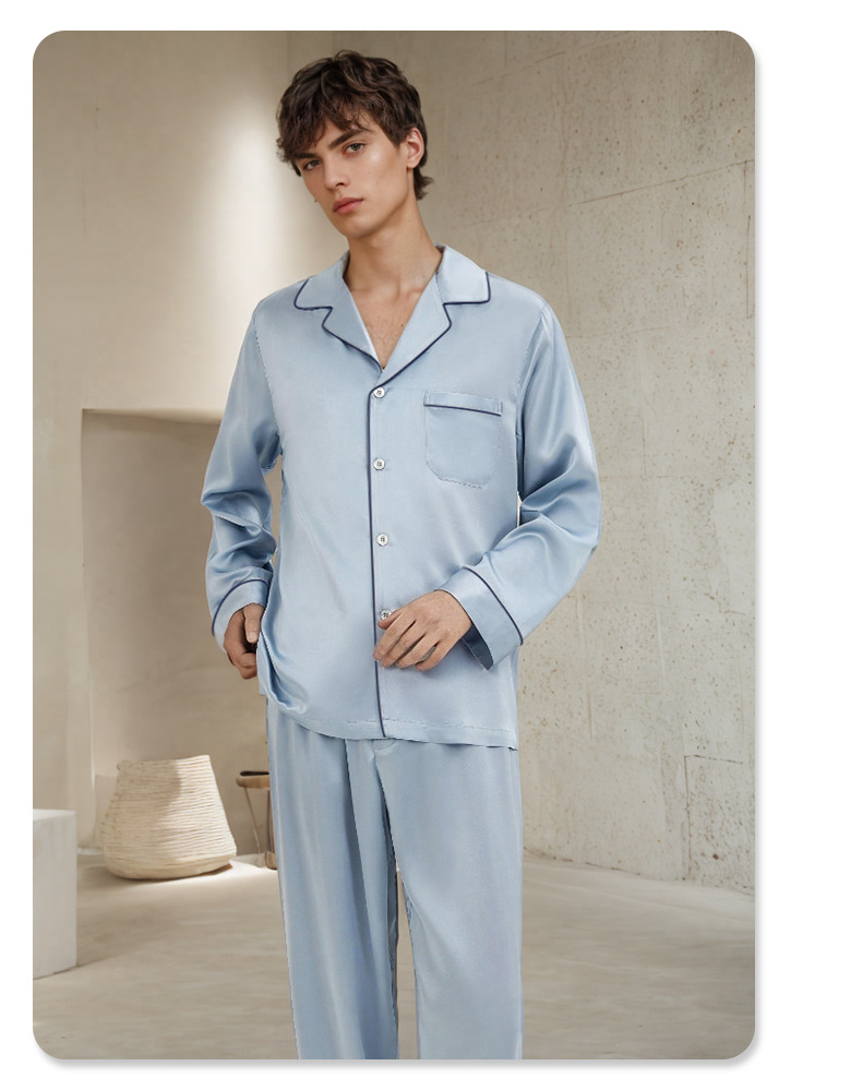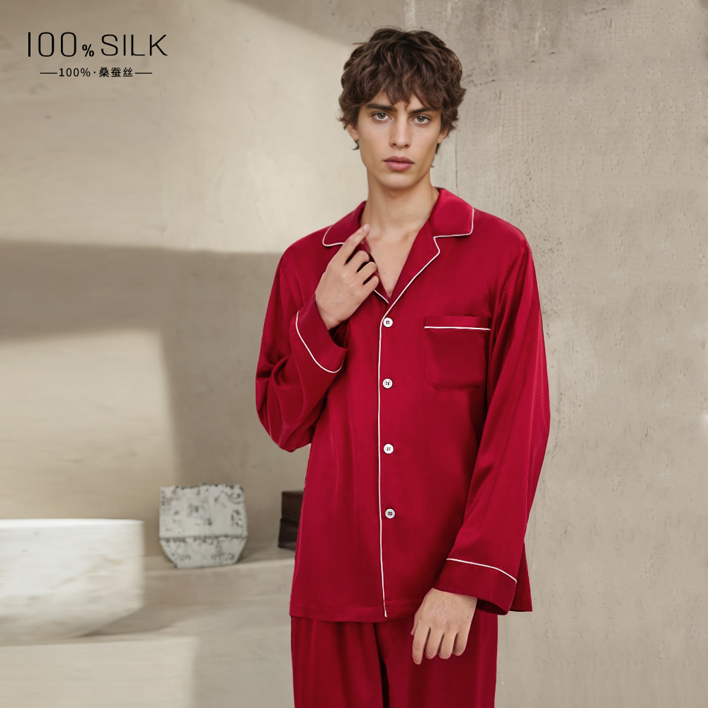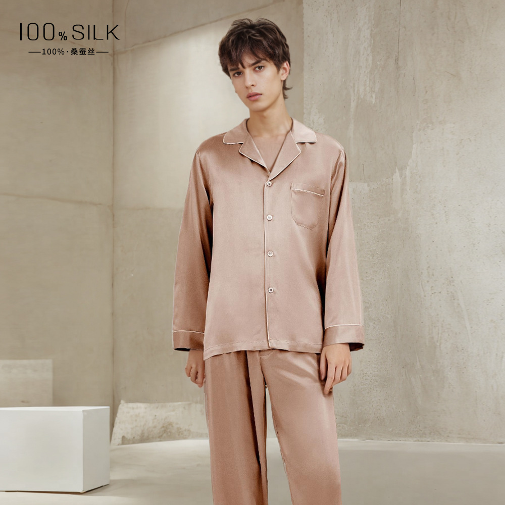19mm 남성용 실크 잠옷, 고급 긴팔 바지 투피스 세트, 100% 뽕나무 실크 홈웨어 세트, 맞춤형스토어 가기
