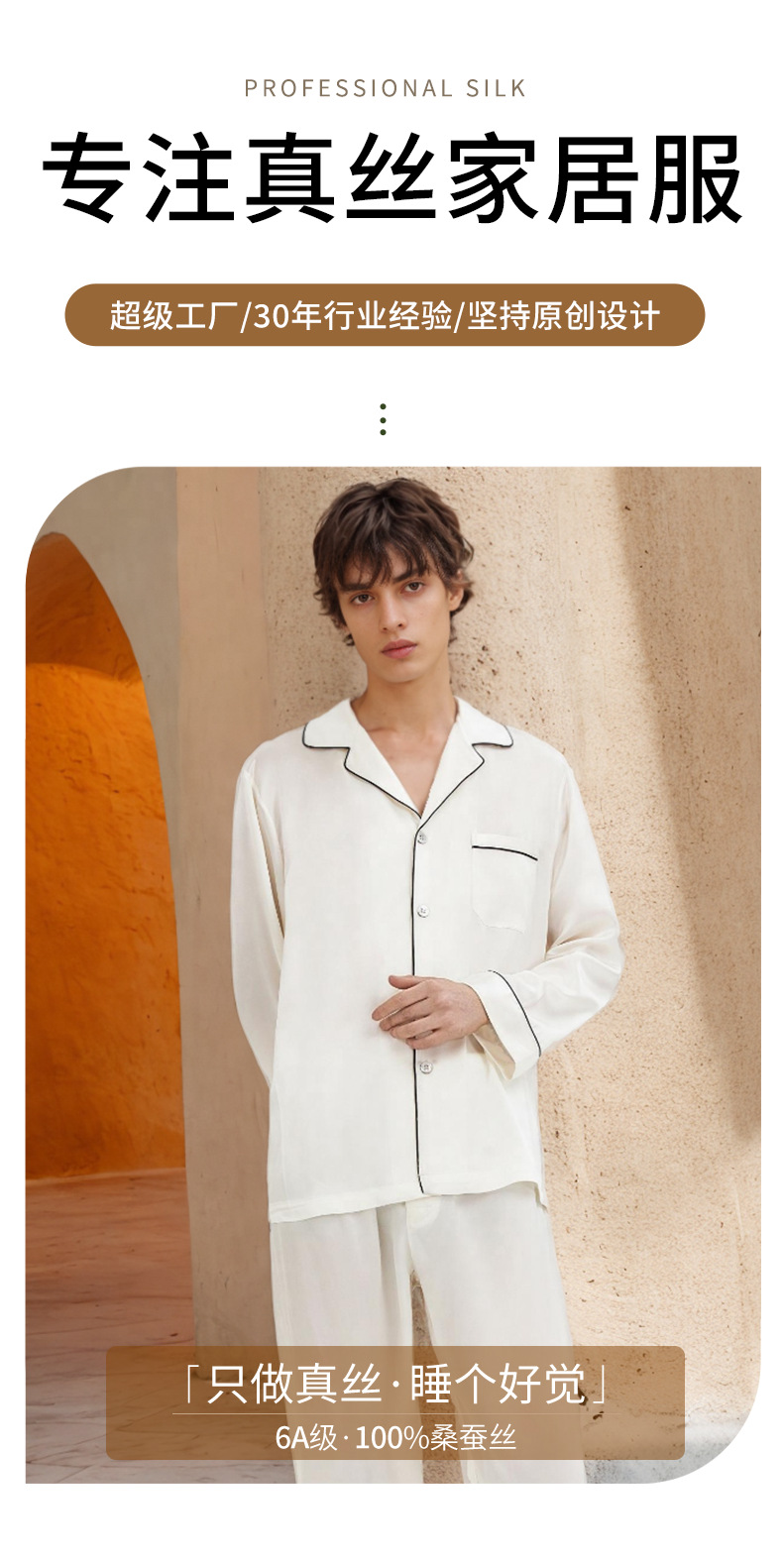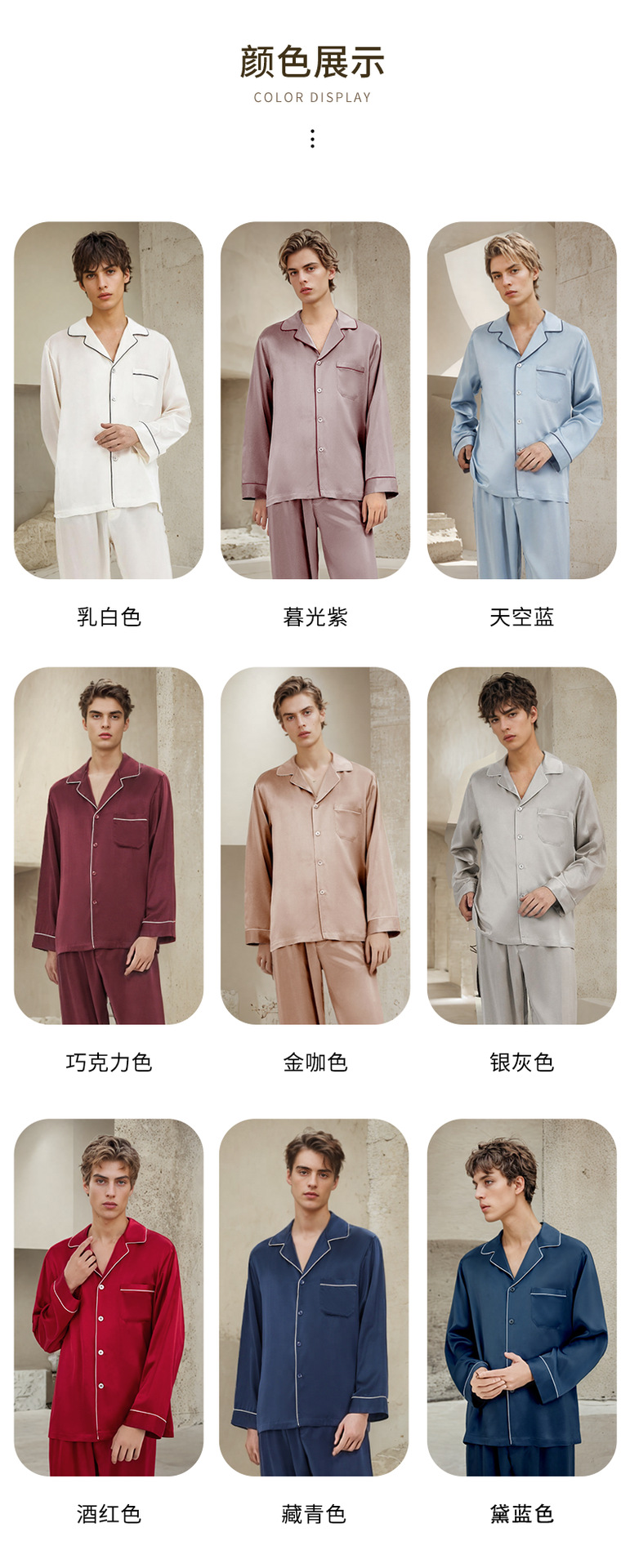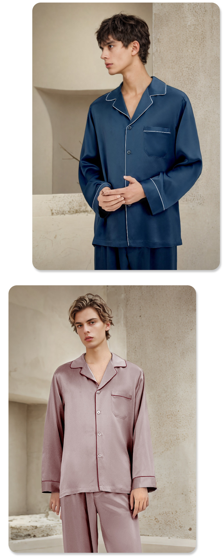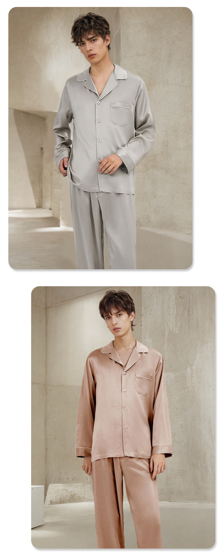 19mm 남성용 실크 잠옷, 고급 긴팔 바지 투피스 세트, 100% 뽕나무 실크 홈웨어 세트, 맞춤형스토어 가기