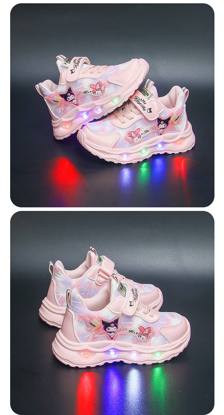 봄과 가을 새로운 어린이 운동화 공주 만화 LED 빛나는 어린이 신발 1-6 세 소녀 스포츠 캐주얼 신발스토어 가기