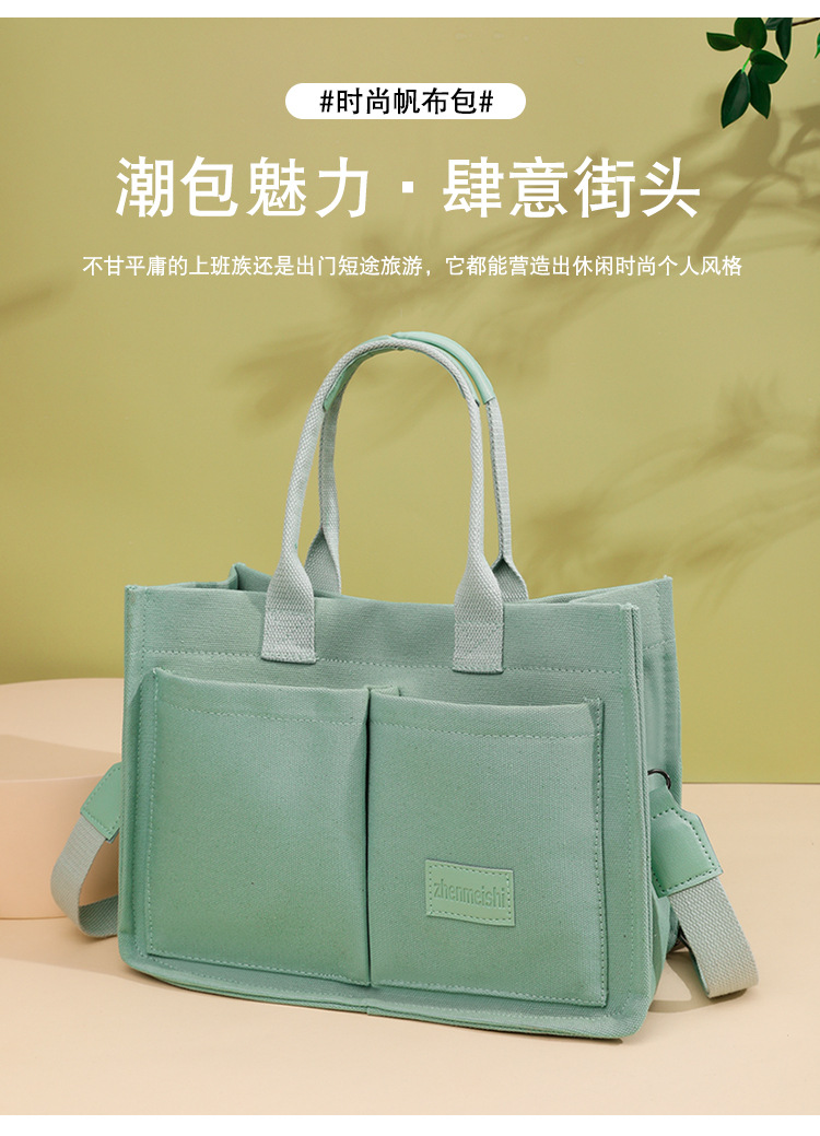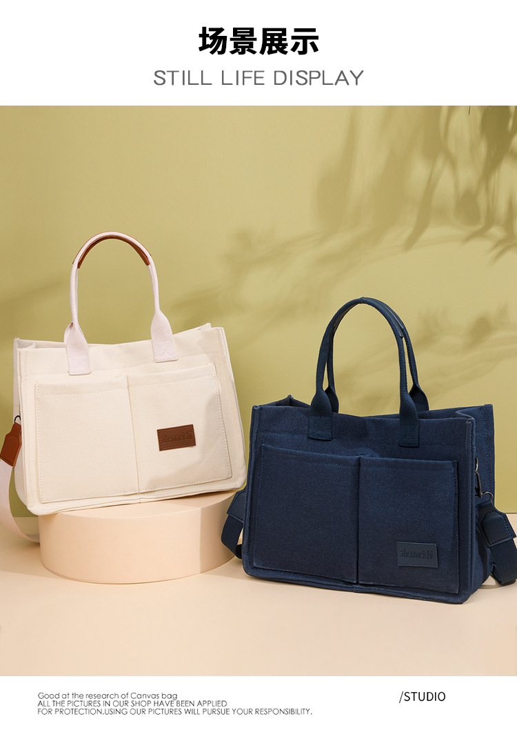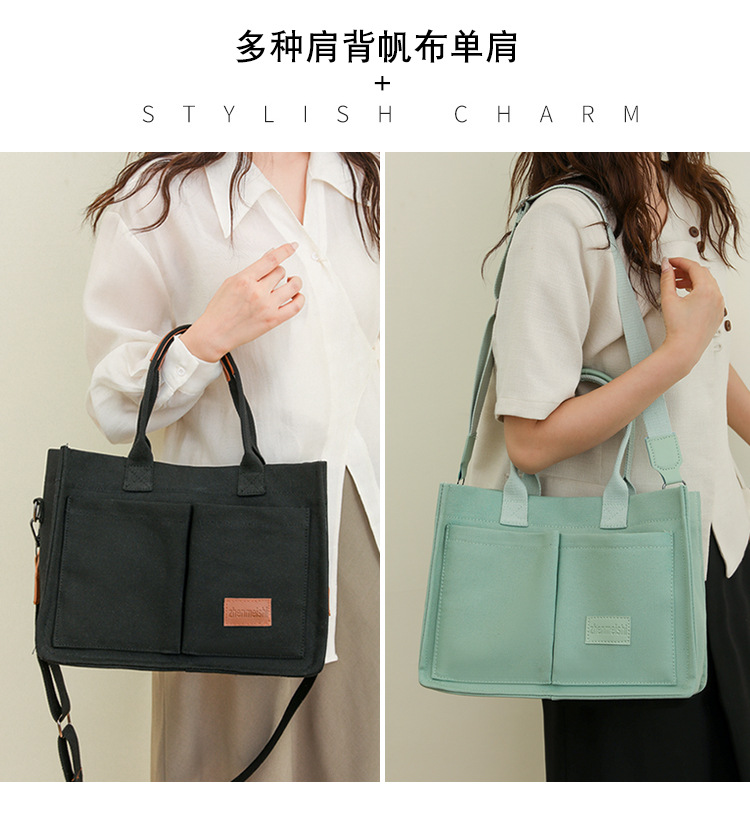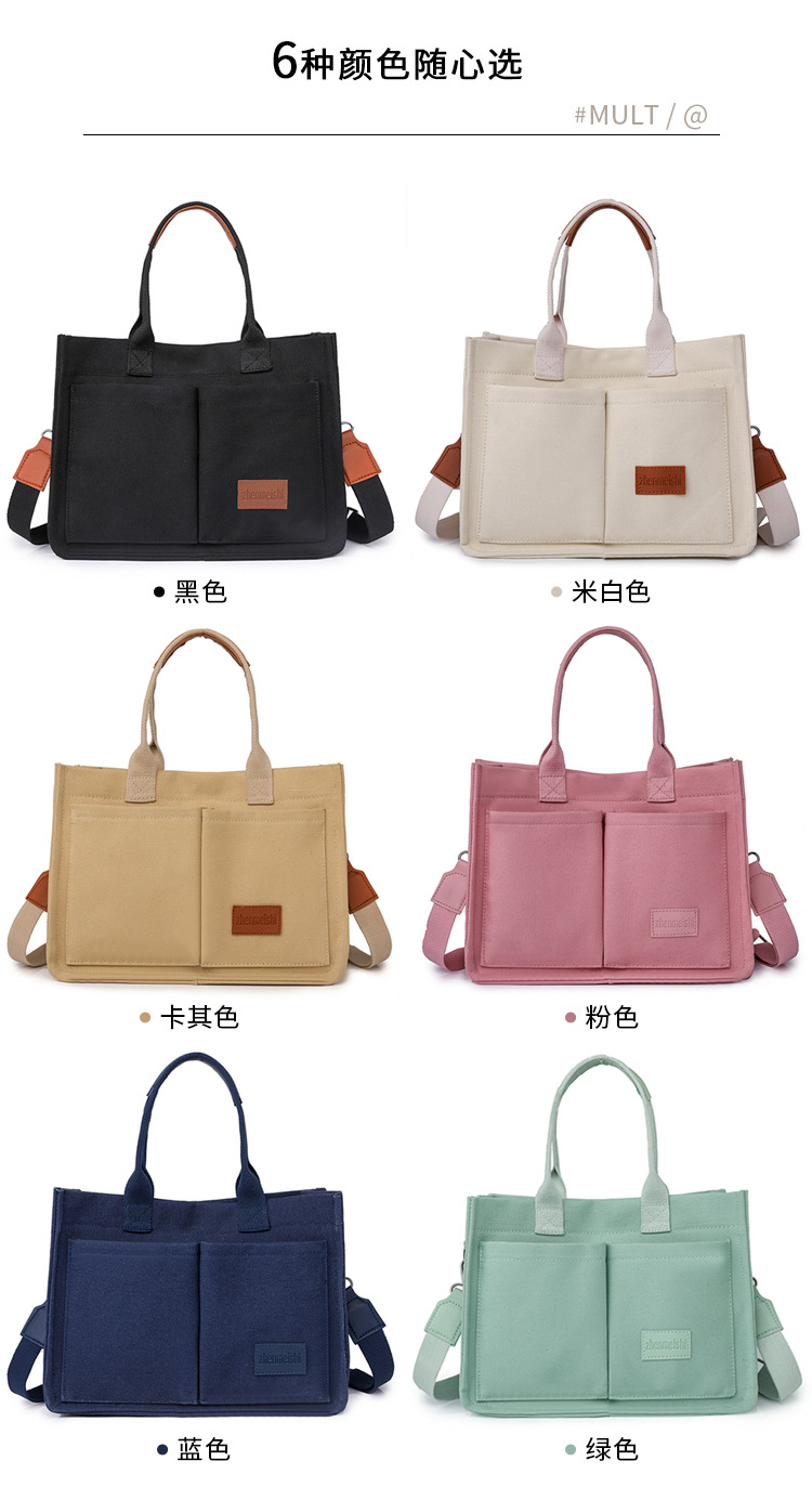 2024 새로운 도착 캔버스 가방 여성 대용량 멀티 포켓 가방 여성용 가방 트렌디 크로스 바디 백 와이드 숄더 스트랩 핸드백