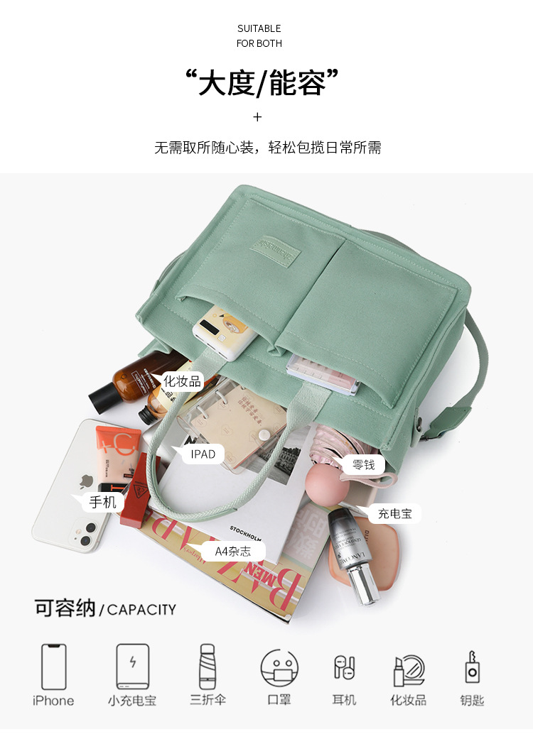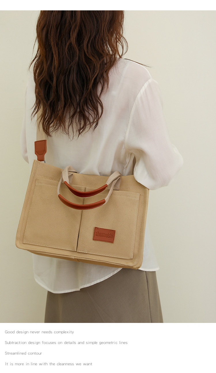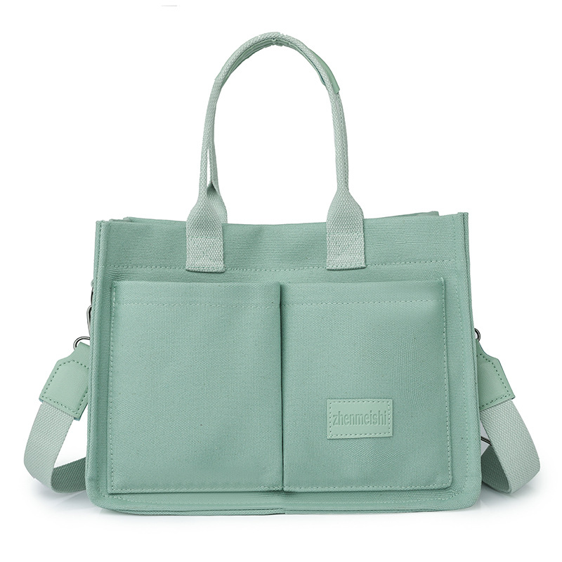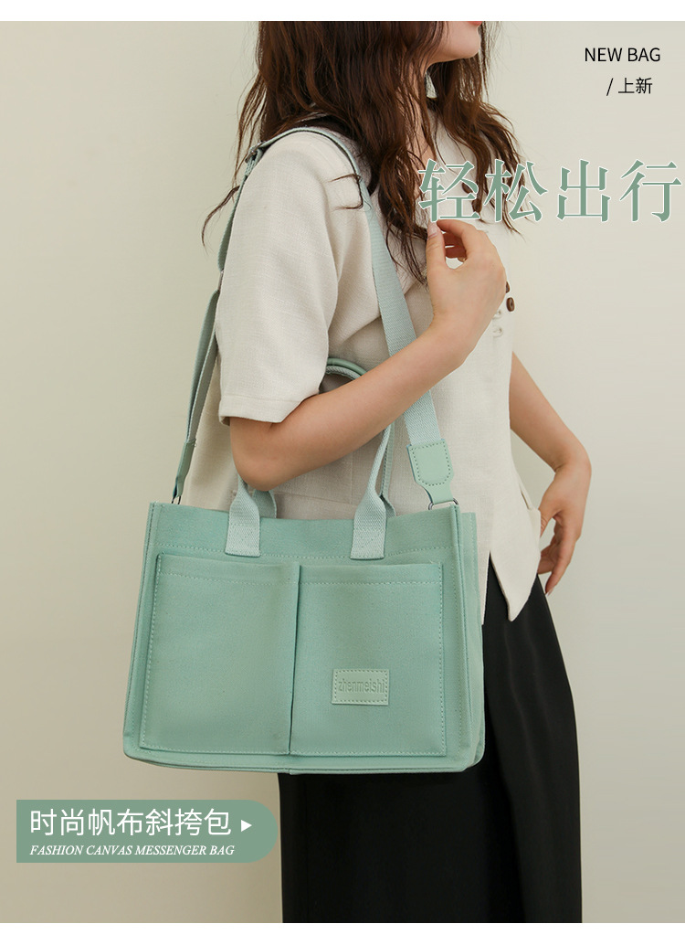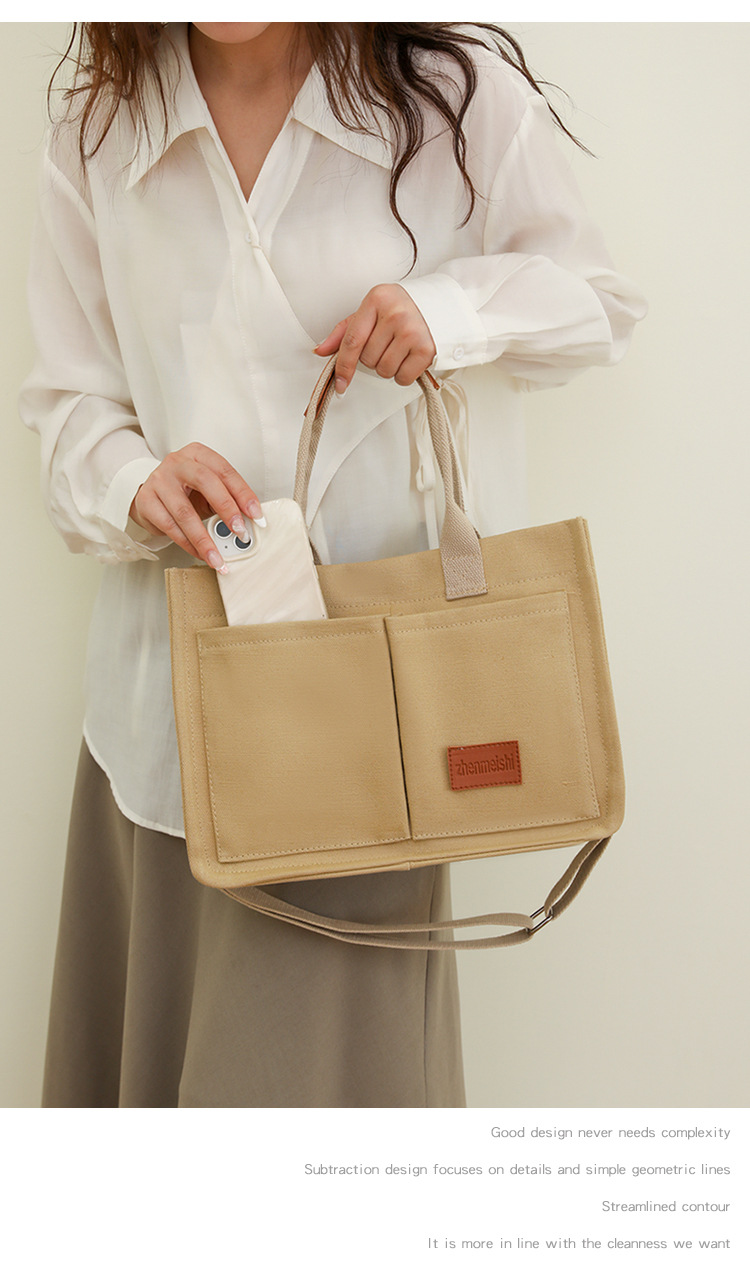 2024 새로운 도착 캔버스 가방 여성 대용량 멀티 포켓 가방 여성용 가방 트렌디 크로스 바디 백 와이드 숄더 스트랩 핸드백