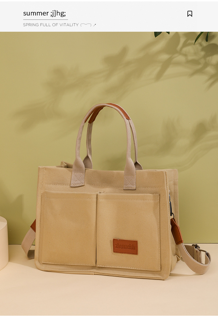 2024 새로운 도착 캔버스 가방 여성 대용량 멀티 포켓 가방 여성용 가방 트렌디 크로스 바디 백 와이드 숄더 스트랩 핸드백스토어 가기