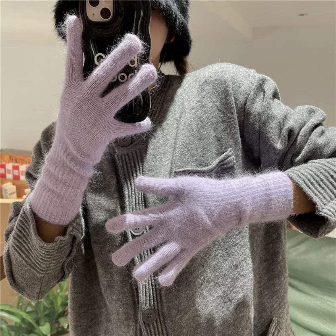 소녀의 핑크 두껍게 부드러운 감기 방지 한국 스타일 Ins 스타일 토끼 봉제 귀여운 따뜻한 니트 긴 울 장갑