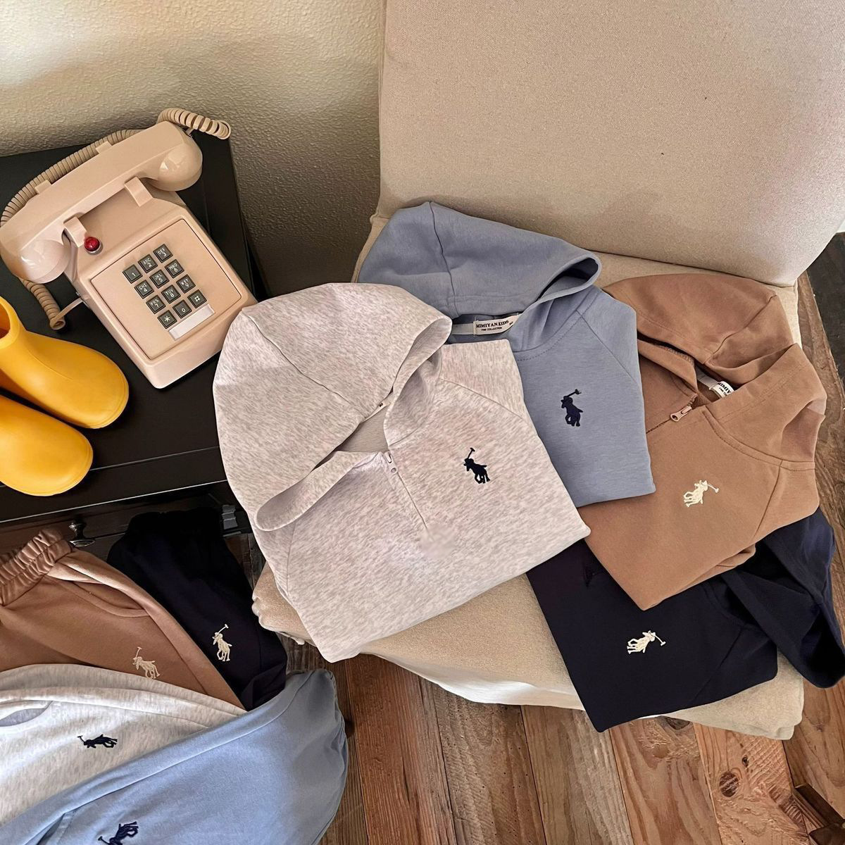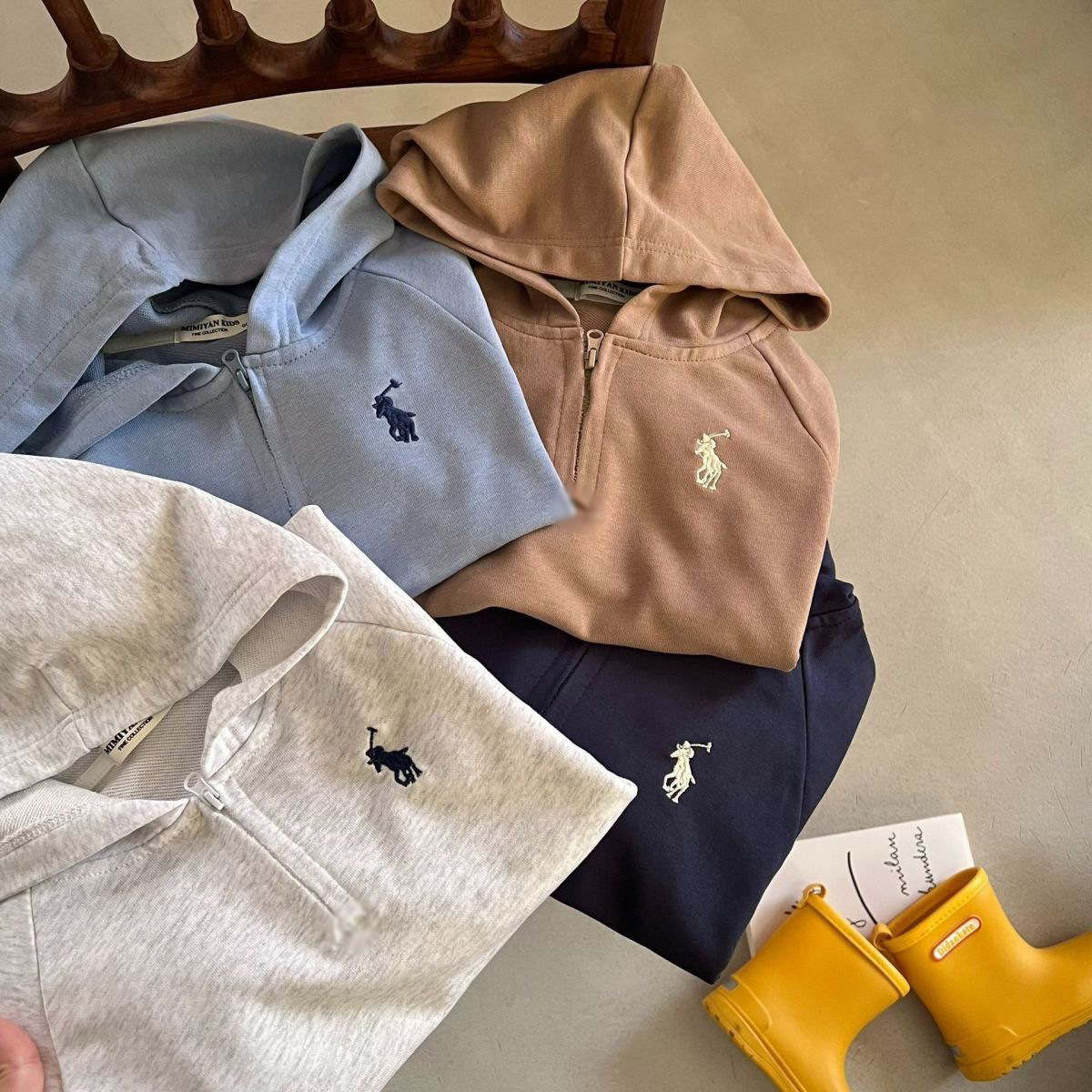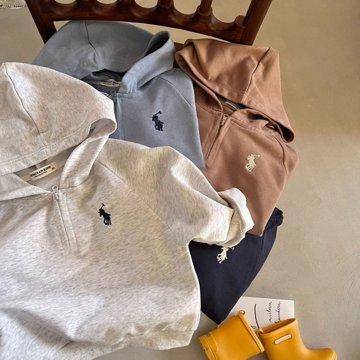 스포츠웨어 한국판 봄 가을 신상 아동복 한국판 자수 지퍼 후드티와 스웨트팬츠 투피스 세트 해외배송