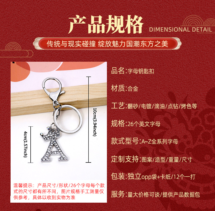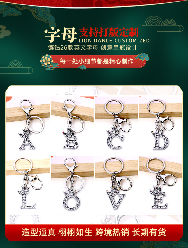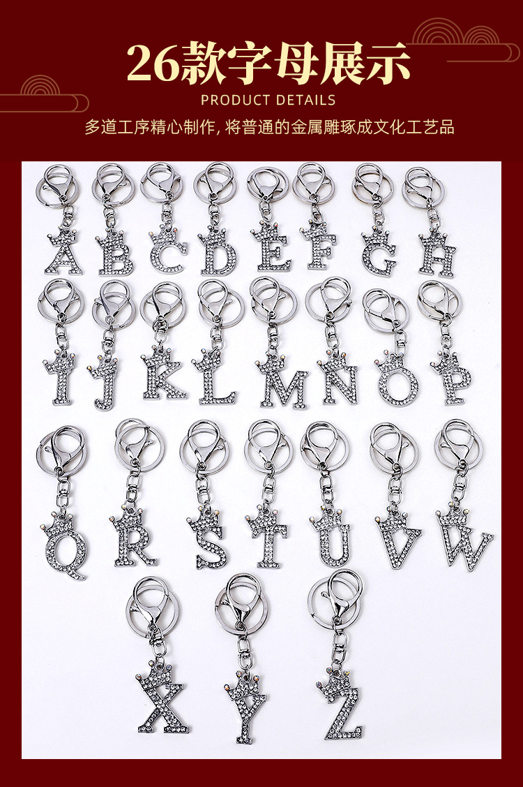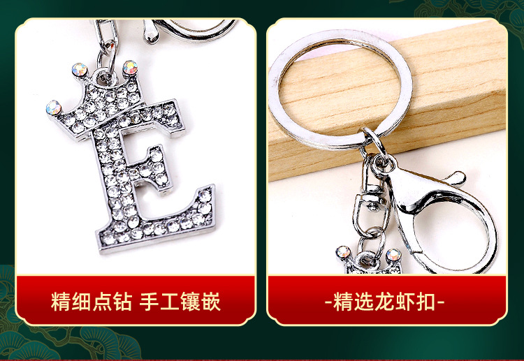 다이아몬드 국경 플래시 다이아몬드 아연 합금 26 영어 문자 키 체인 여성 유럽과 미국의 한국 패션 가방 펜던트 도매