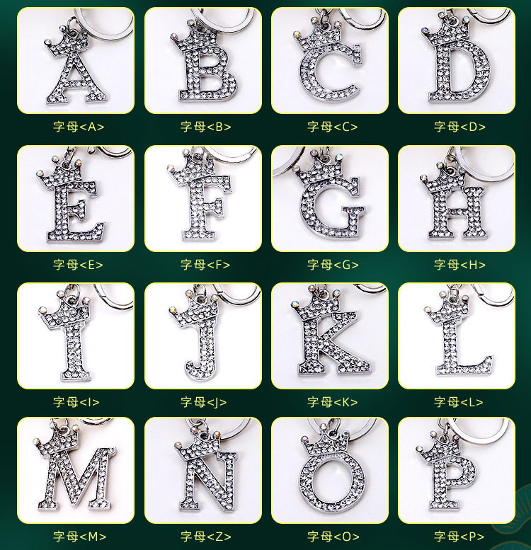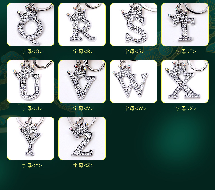 다이아몬드 국경 플래시 다이아몬드 아연 합금 26 영어 문자 키 체인 여성 유럽과 미국의 한국 패션 가방 펜던트 도매스토어 가기