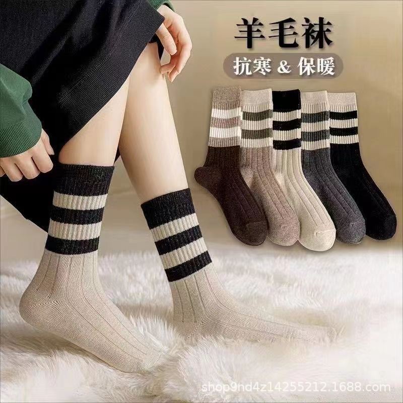 Zhuji 양말 여자 봄과 가을 Millard Ins 트렌디 한 올 매치 더미 양말 여자 줄무늬 양말 여자 긴 양말