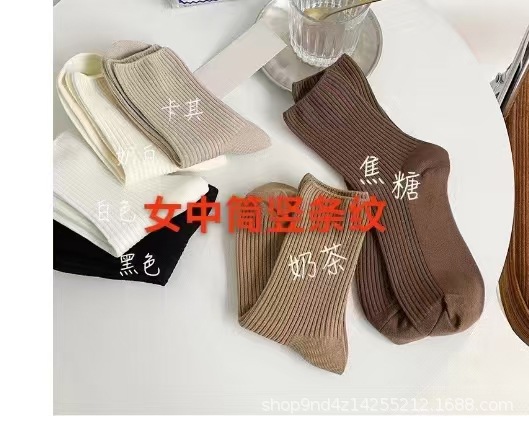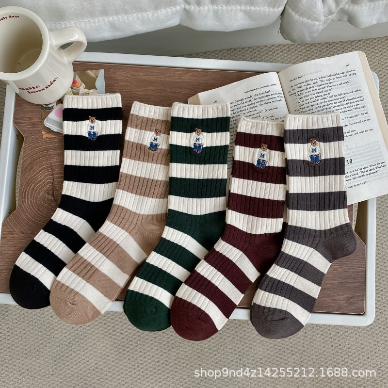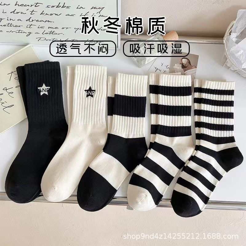 Zhuji 양말 여자 봄과 가을 Millard Ins 트렌디 한 올 매치 더미 양말 여자 줄무늬 양말 여자 긴 양말스토어 가기