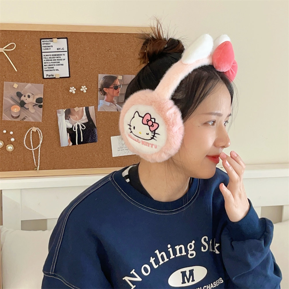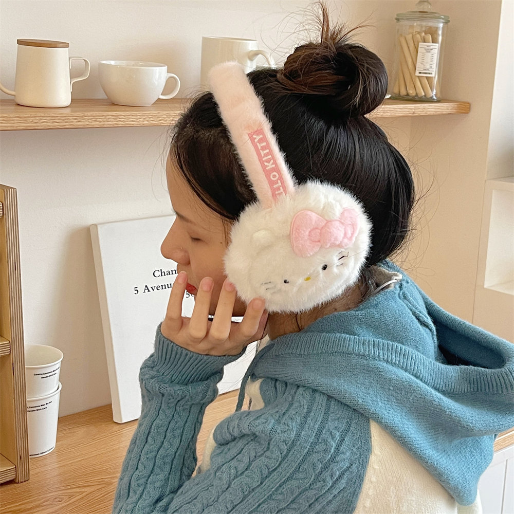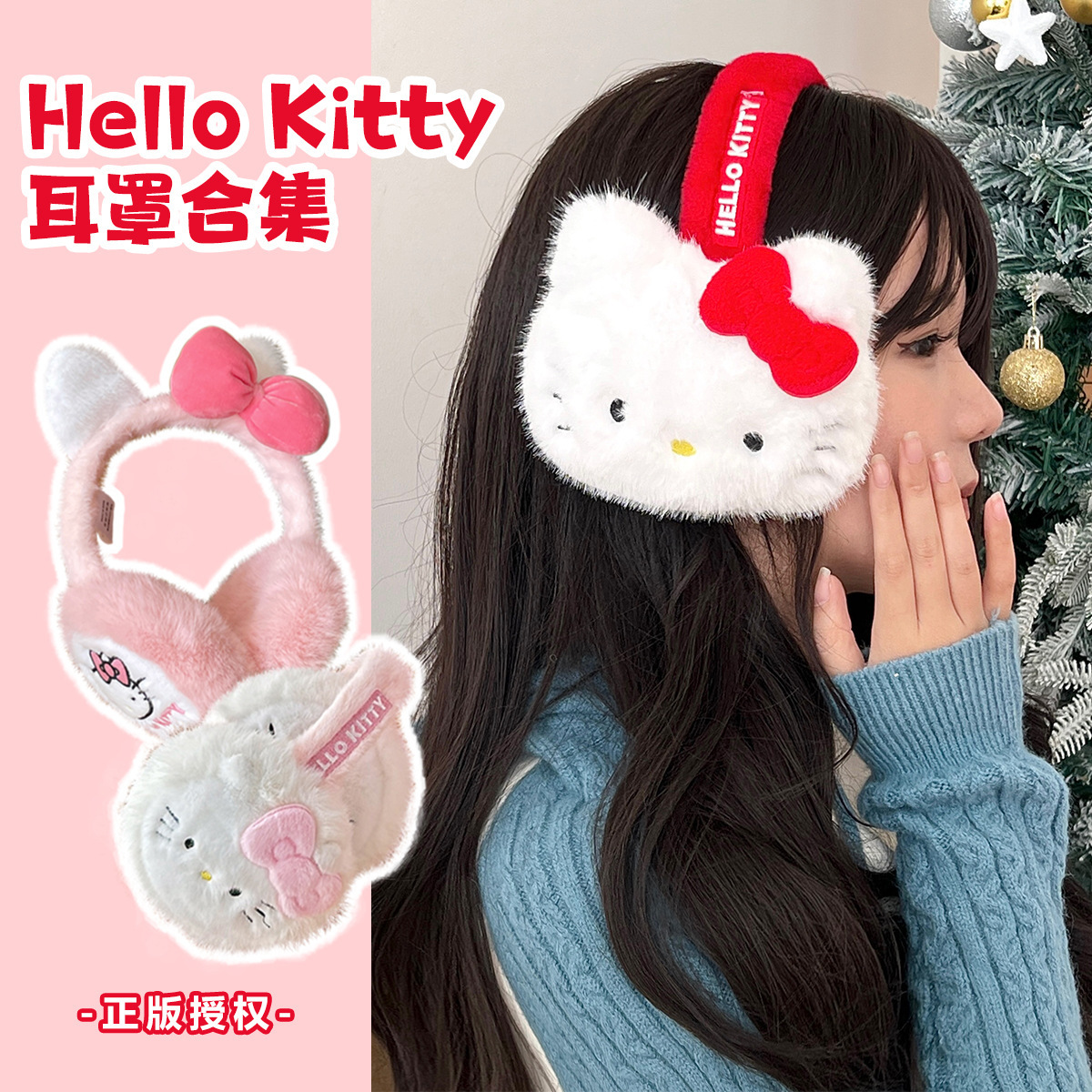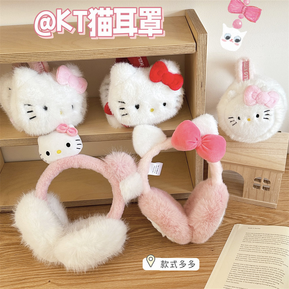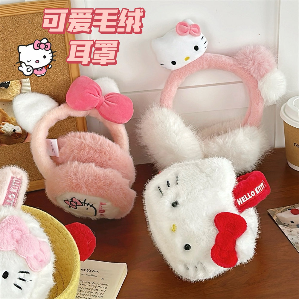 산리오 정품 공인 귀여운 봉제 헬로 키티 따뜻한 귀마개 가을과 겨울 학생 반동결 귀마개를 타고스토어 가기