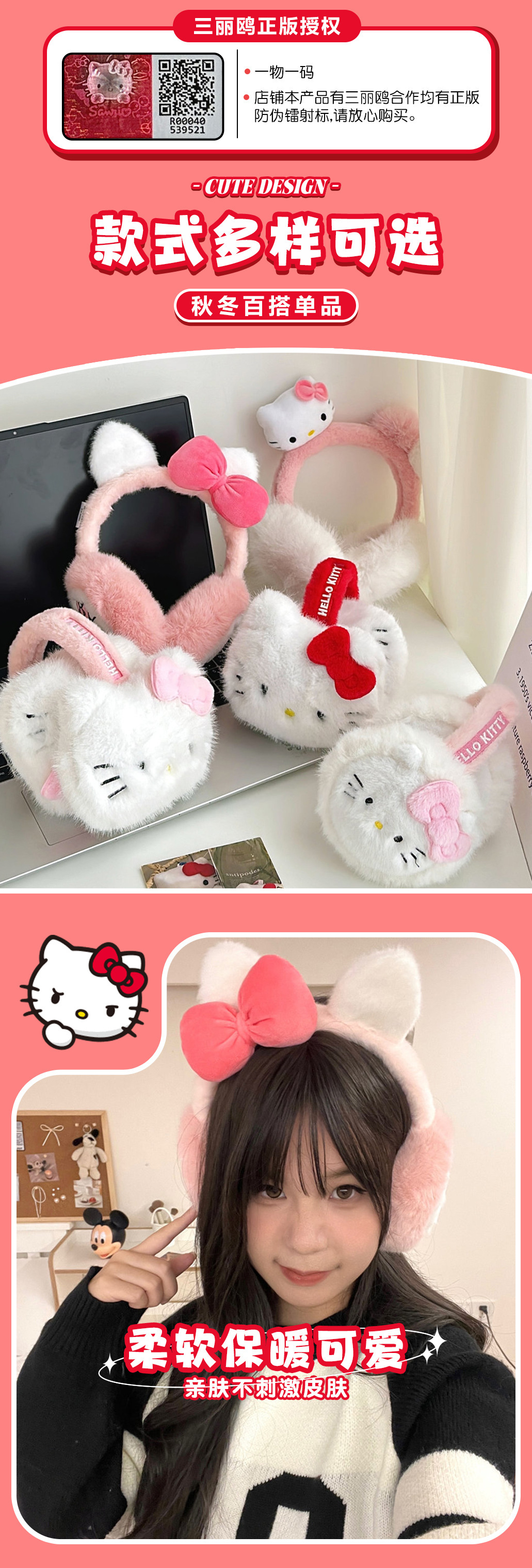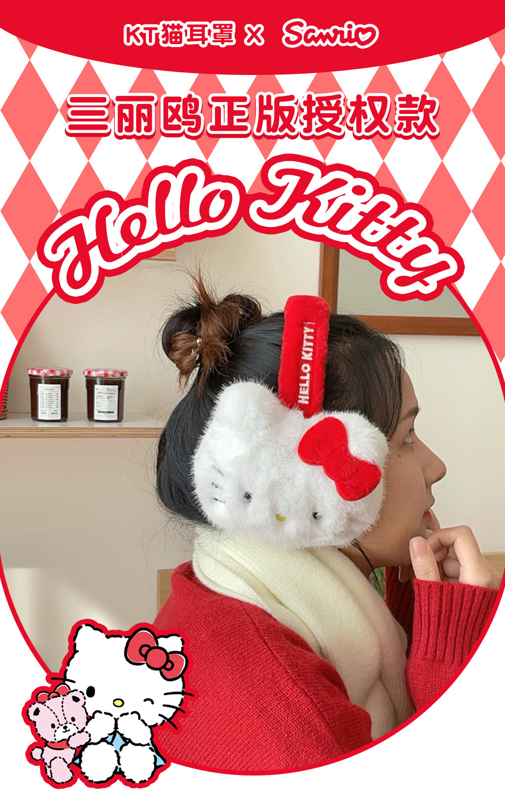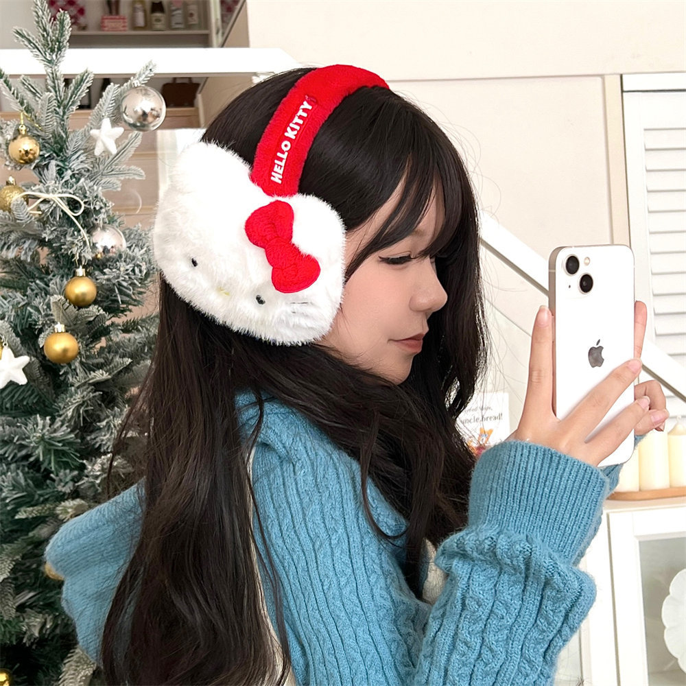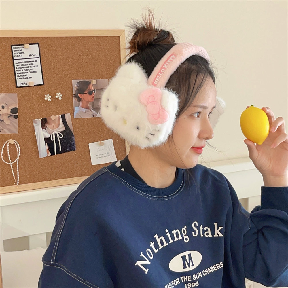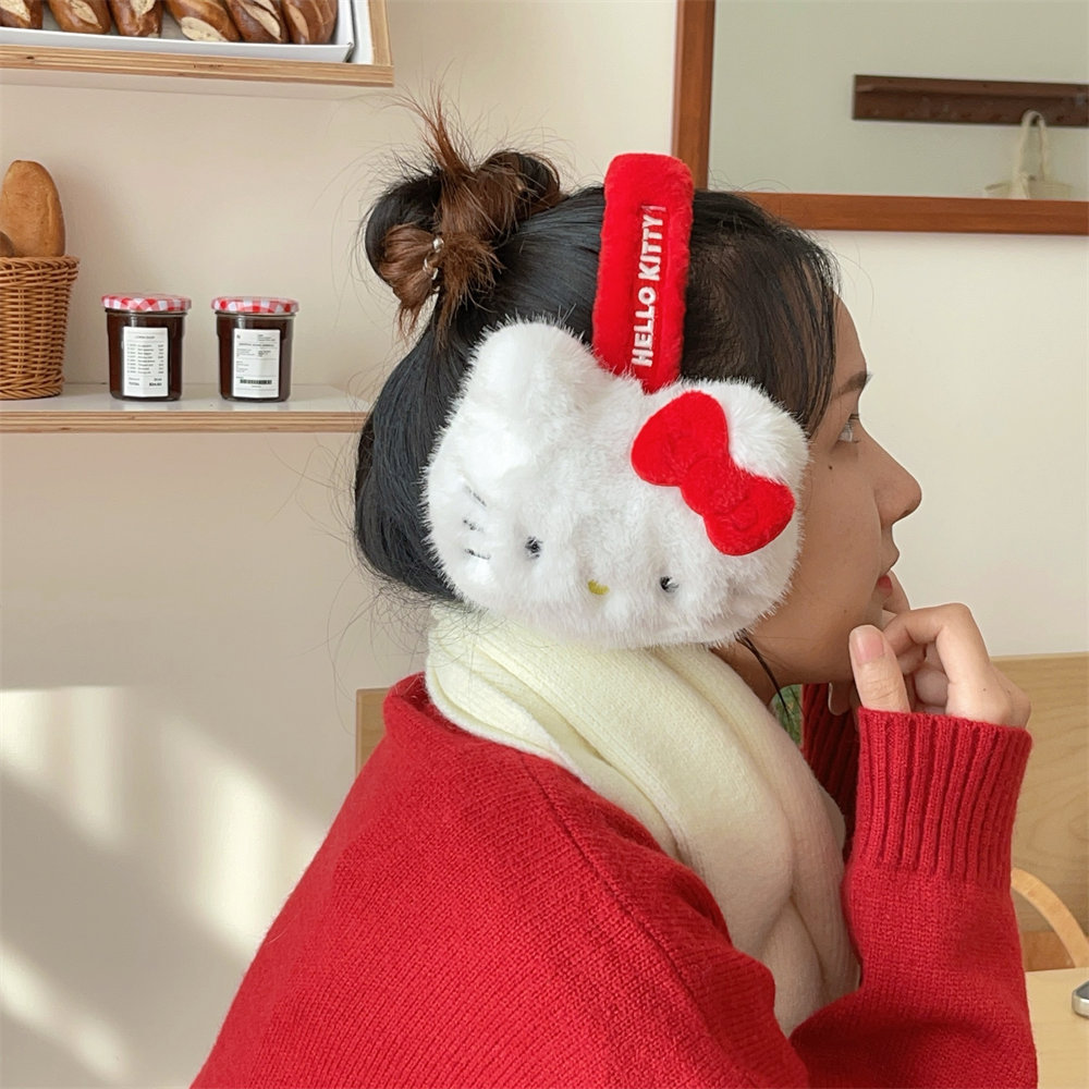 산리오 정품 공인 귀여운 봉제 헬로 키티 따뜻한 귀마개 가을과 겨울 학생 반동결 귀마개를 타고스토어 가기
