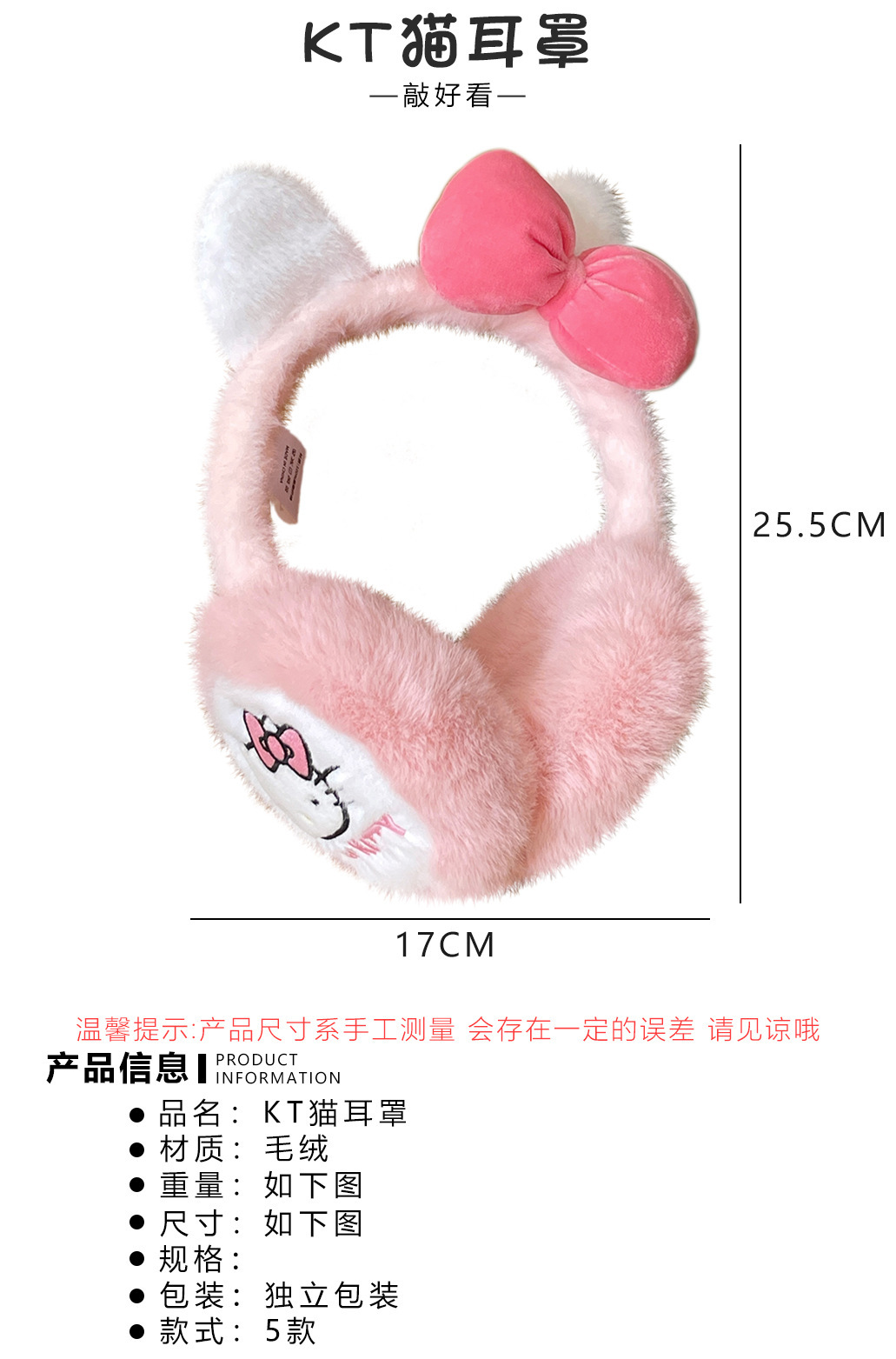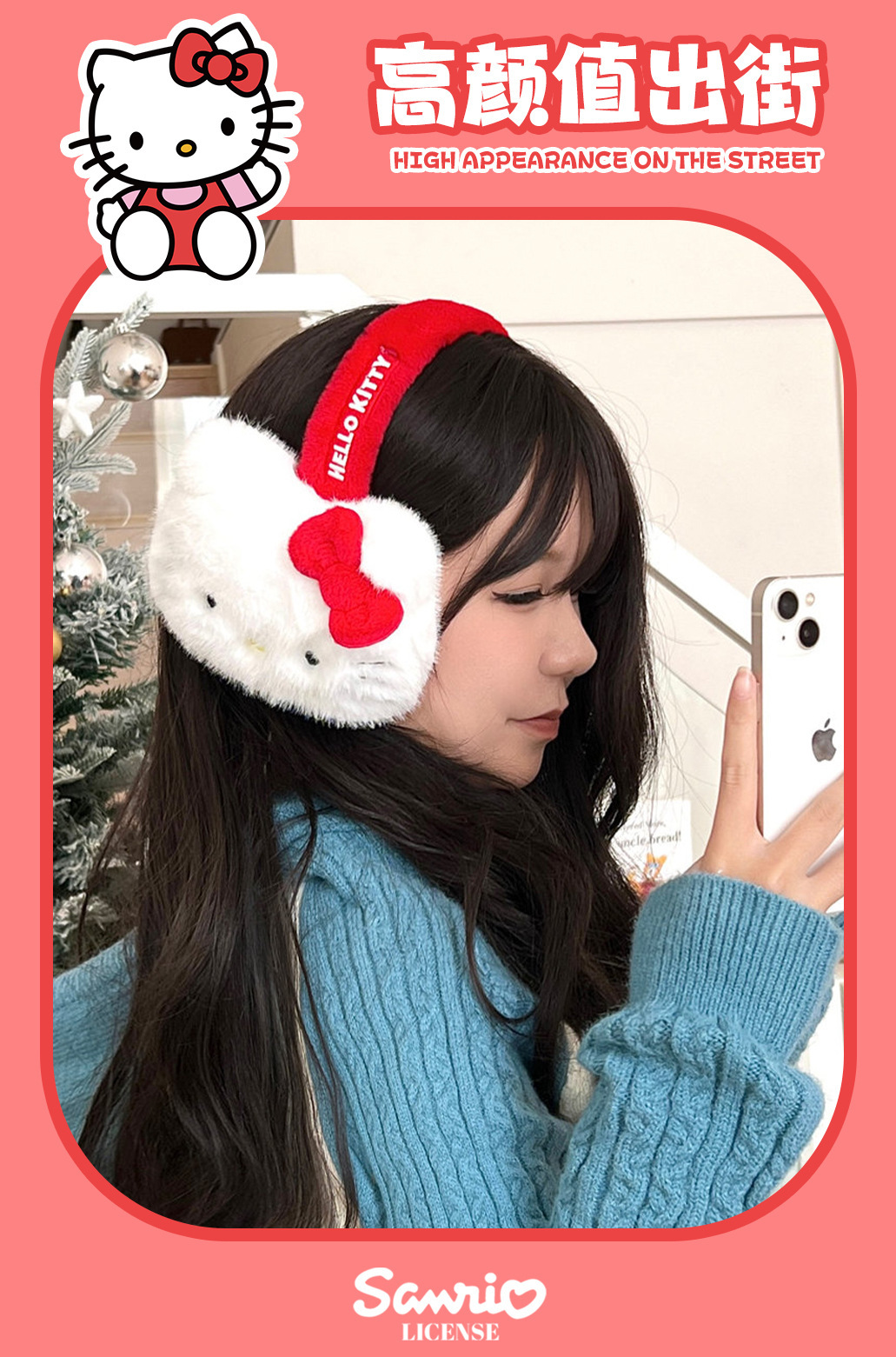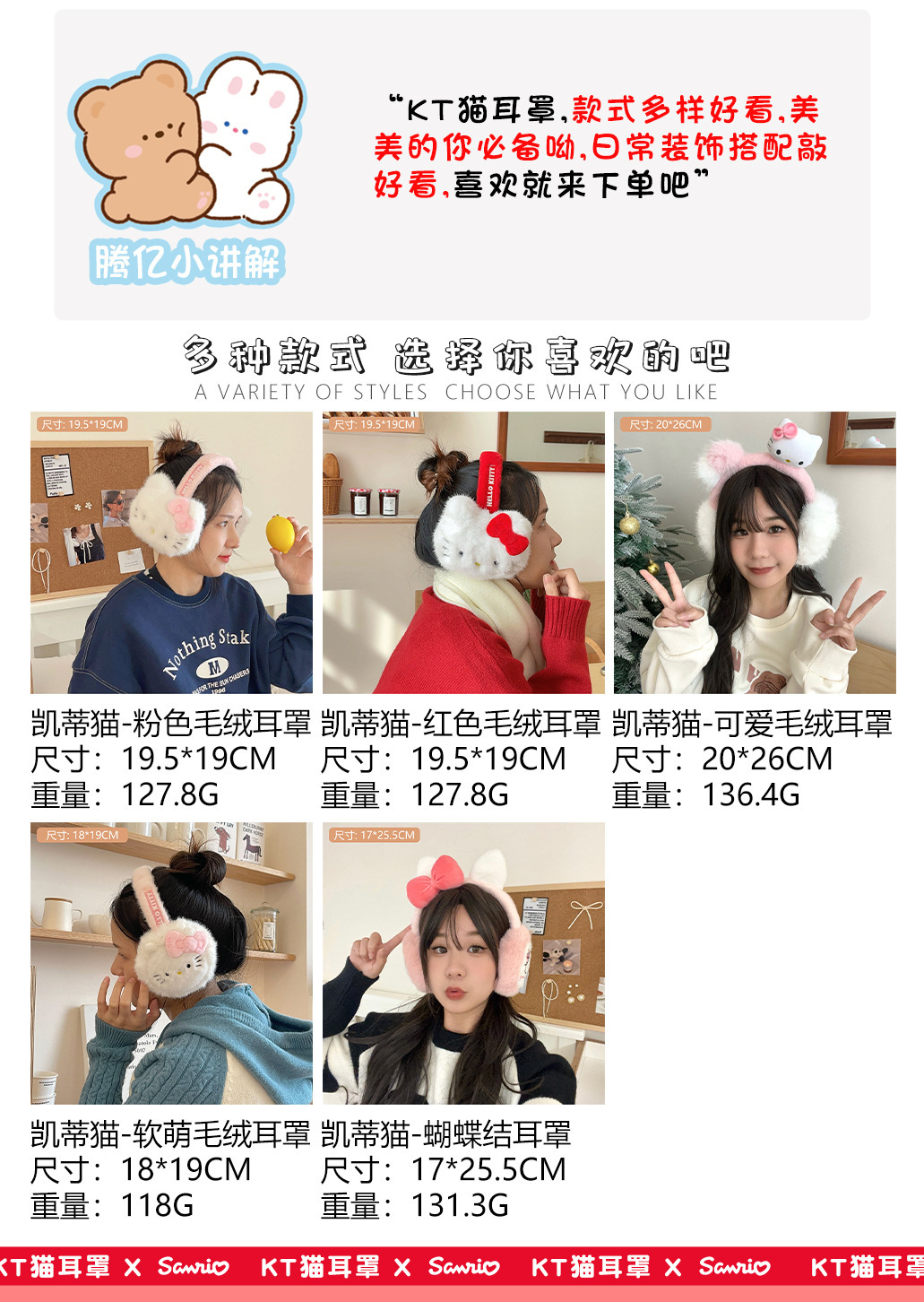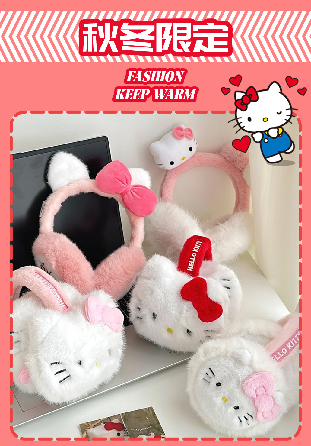 산리오 정품 공인 귀여운 봉제 헬로 키티 따뜻한 귀마개 가을과 겨울 학생 반동결 귀마개를 타고스토어 가기