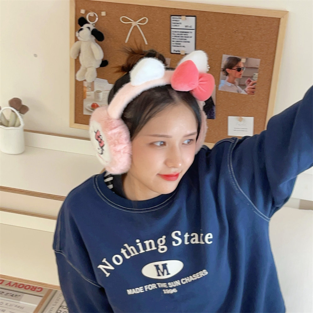 산리오 정품 공인 귀여운 봉제 헬로 키티 따뜻한 귀마개 가을과 겨울 학생 반동결 귀마개를 타고