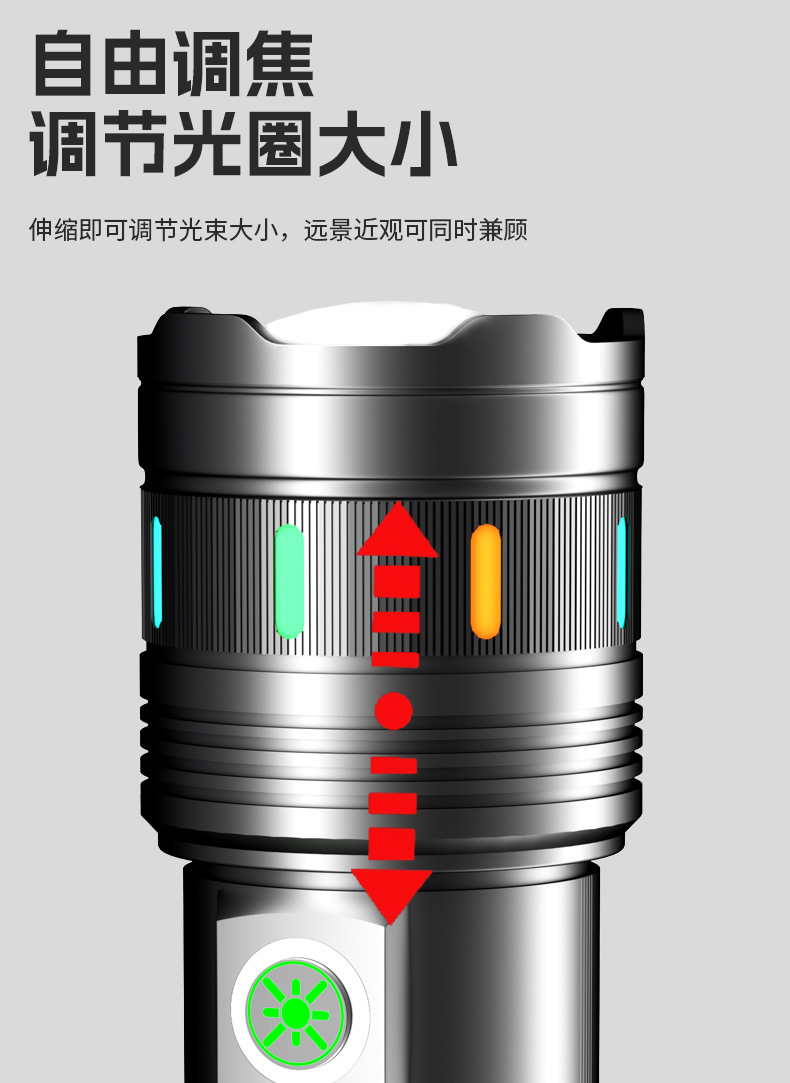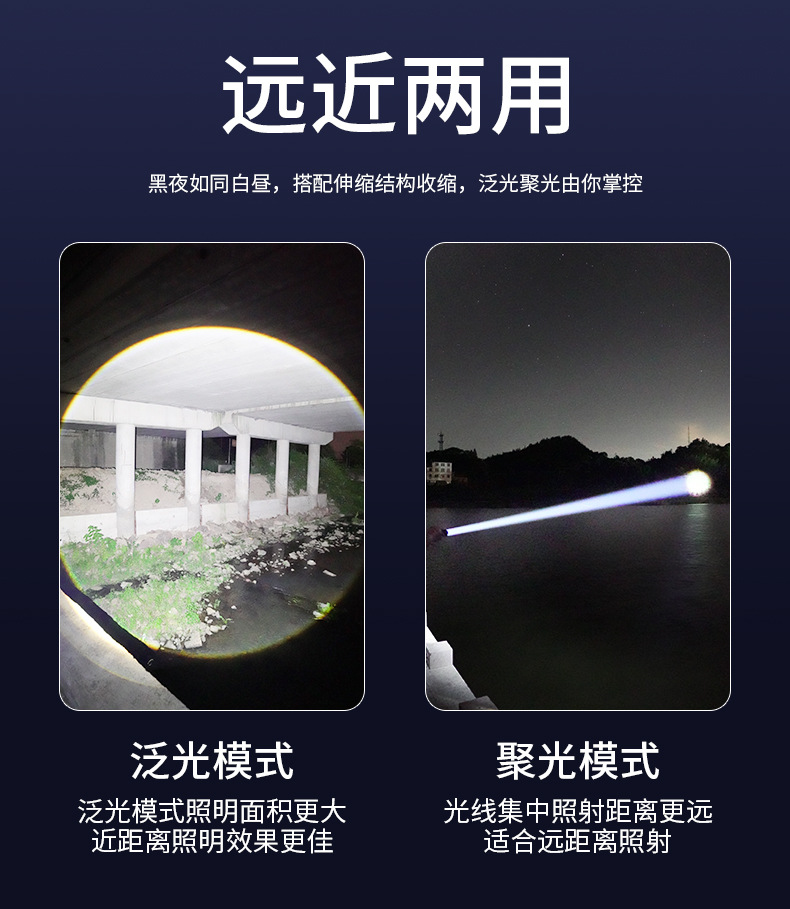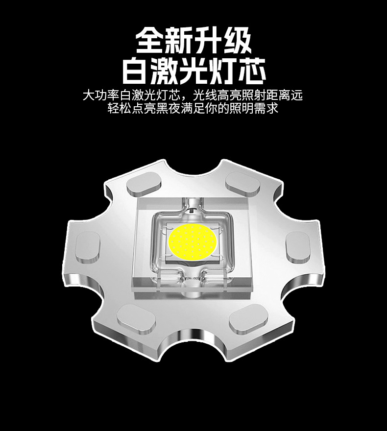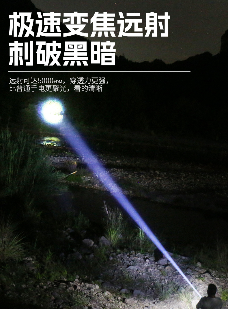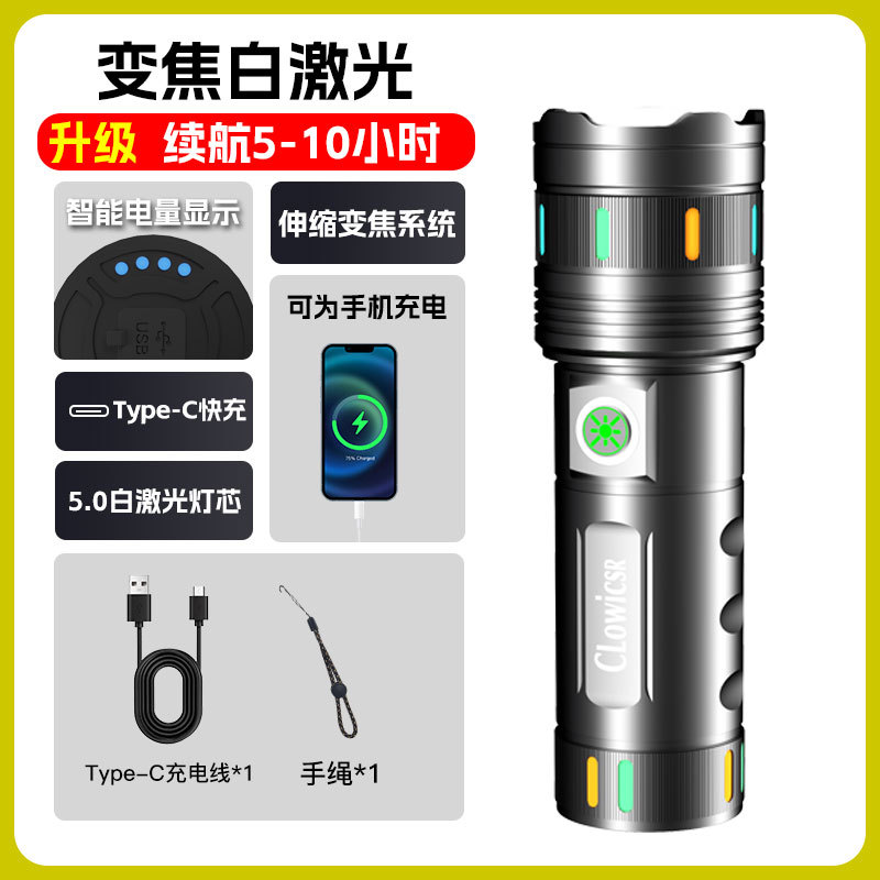 야광 스트립 화이트 레이저 장거리 USB 충전식 야외 가정용 줌 기능 비상 작업등 손전등 배터리 수명