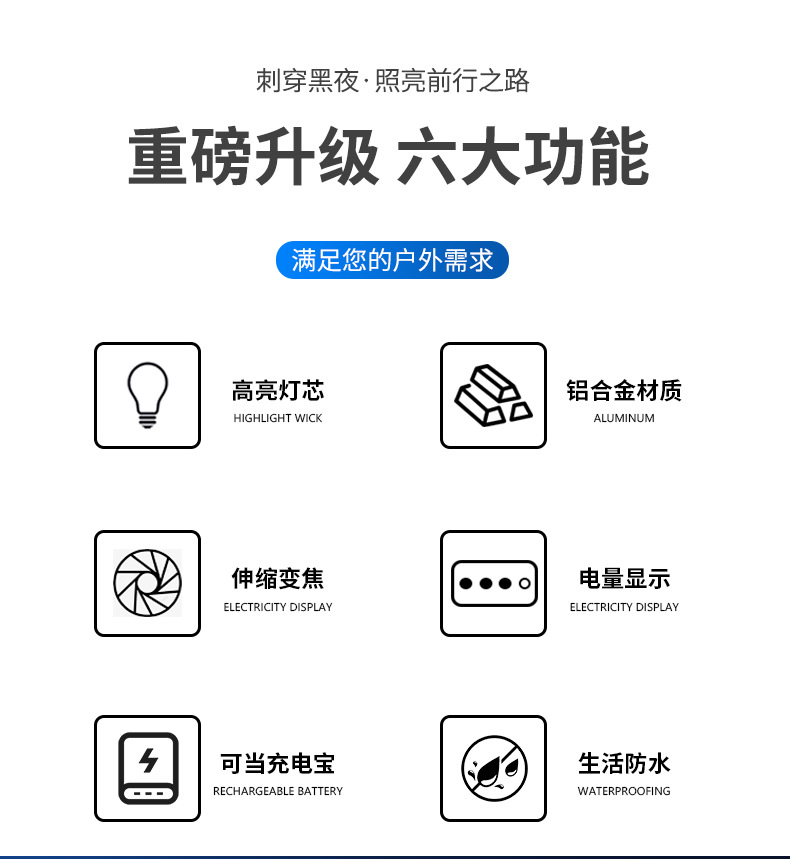 功能 :照明、夜骑、露营、帐篷