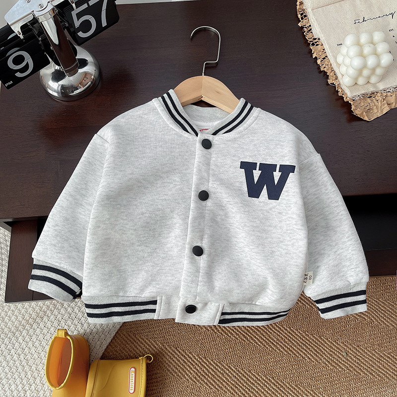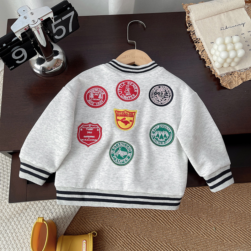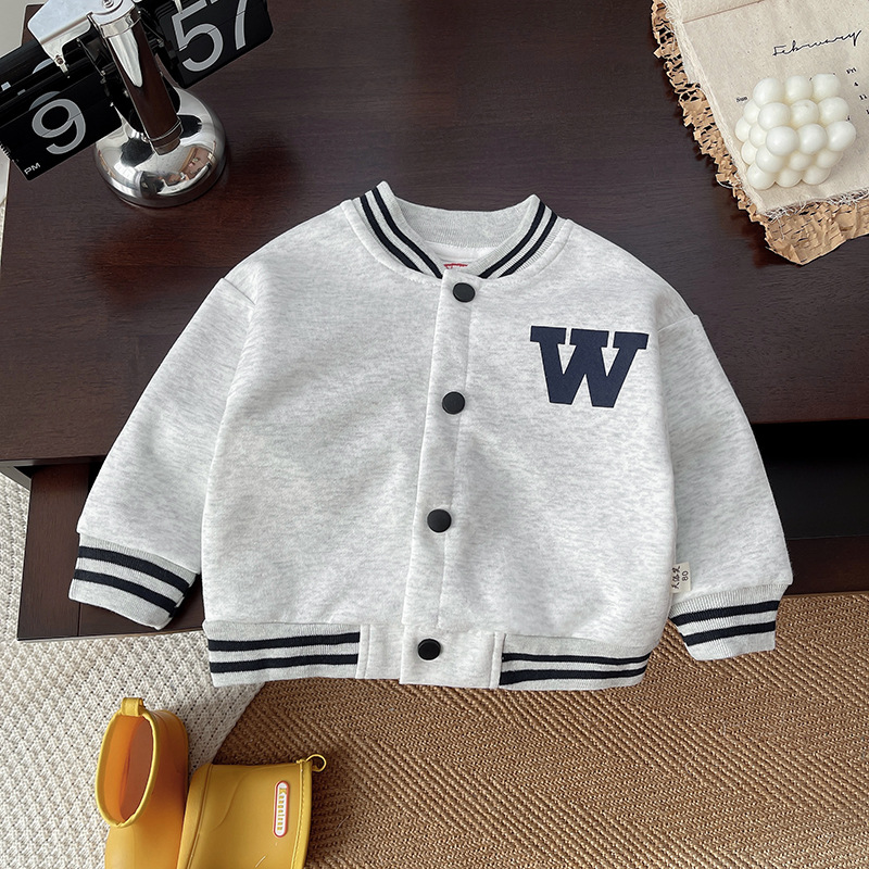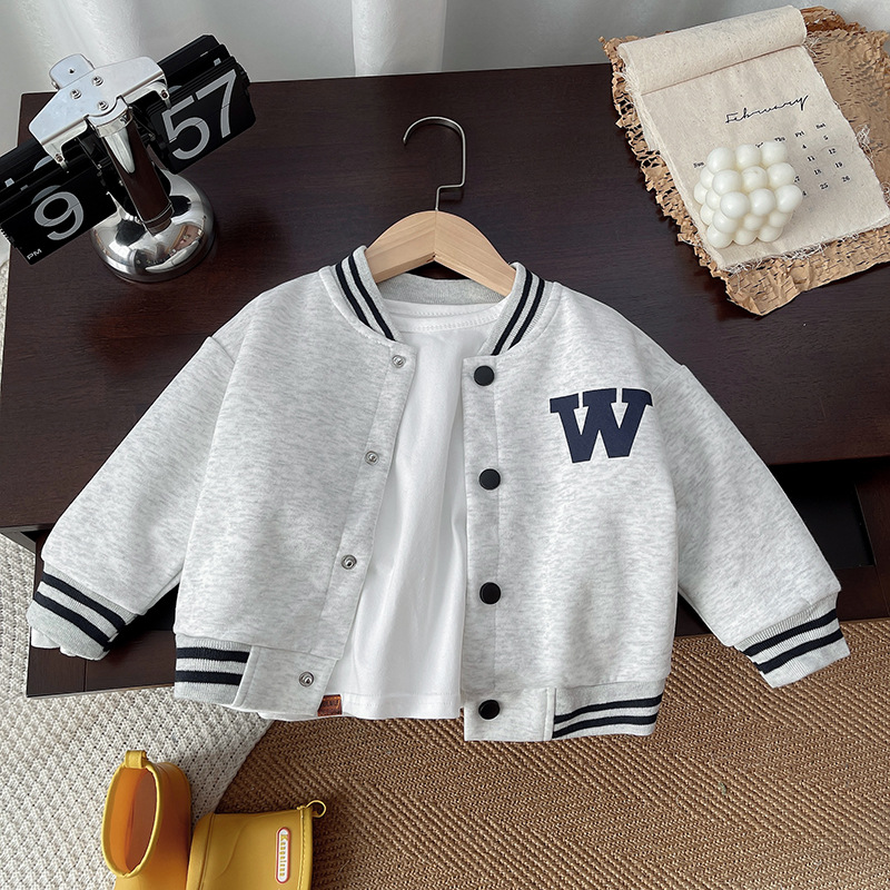 아동용 재킷 2025 만화 귀여운 가을 신상품 남아 여아 라벨 장식 짧은 야구 점퍼 아기 레터링 재킷