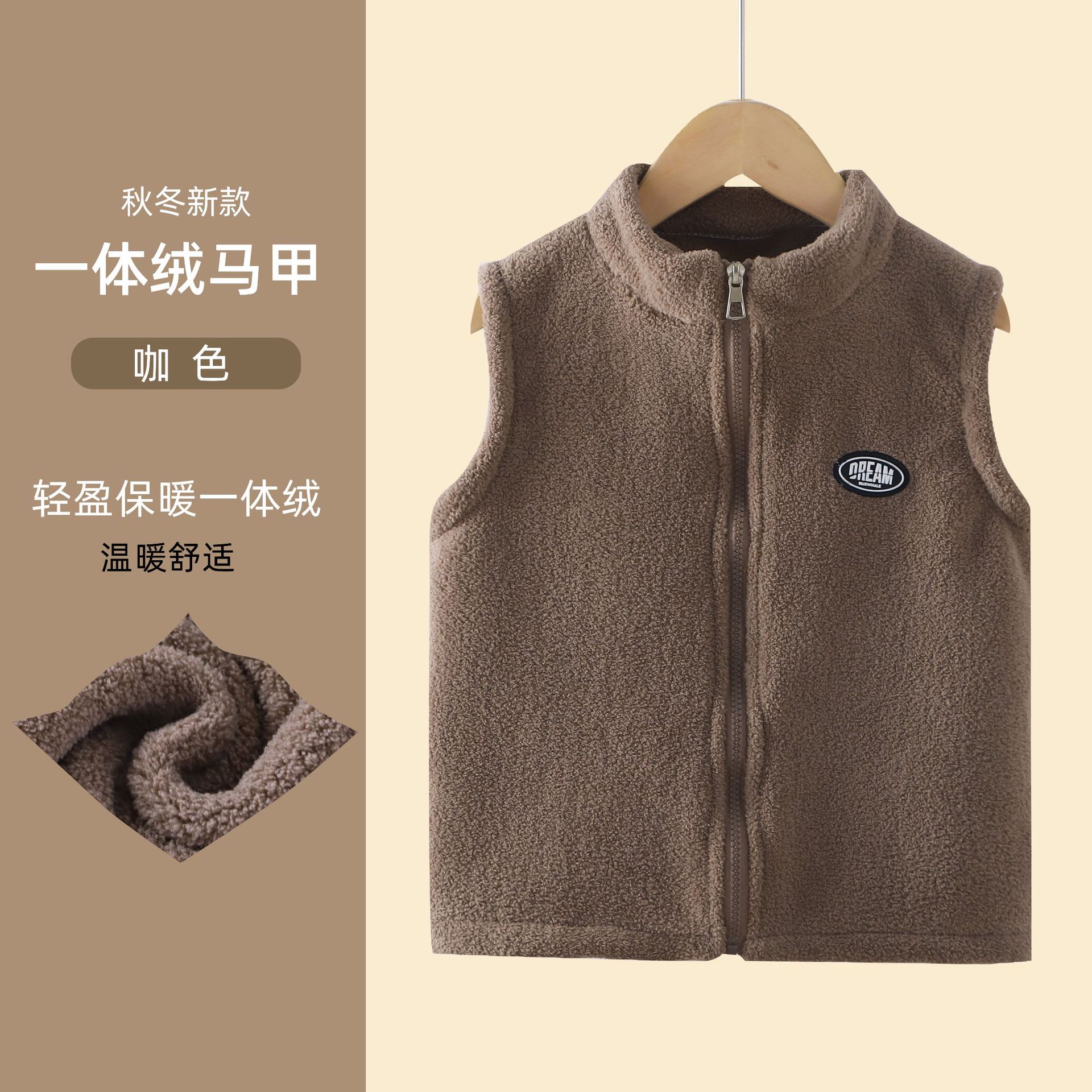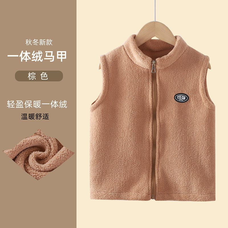 가을과 겨울 원피스 레드 베이 베리 벨벳 어린이 조끼 양복 조끼 만화 따뜻한 외국 스타일의 아기 소년과 소녀 두꺼운 착용스토어 가기