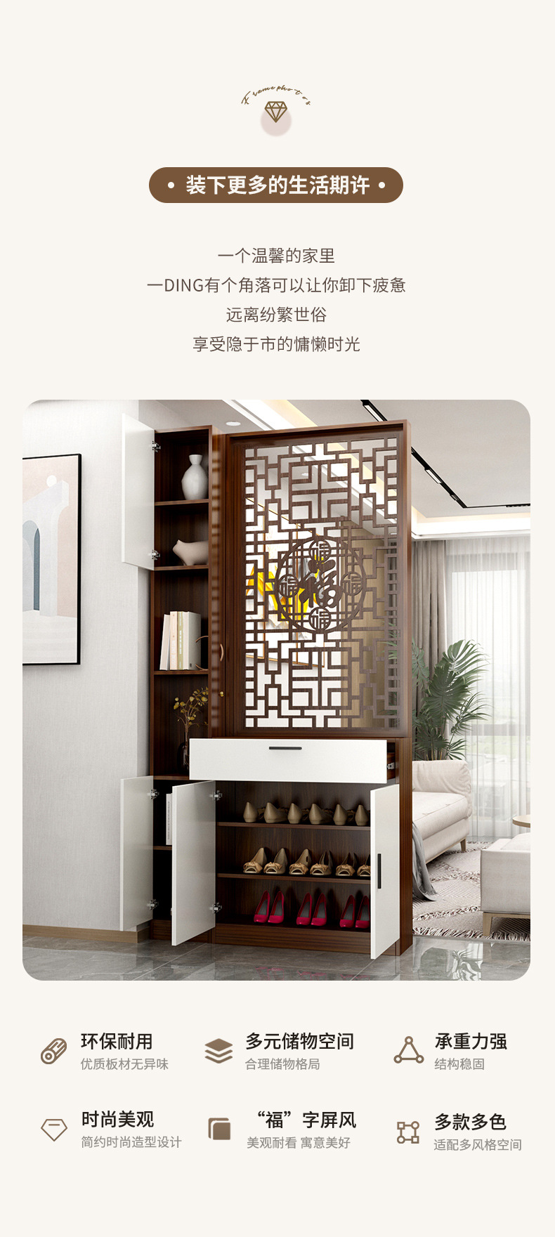 새로운 중국식 현관 캐비닛, 스크린 파티션, 신발장, 와인 캐비닛, 일체형 거실 입구, 도어 차단 입구 수납 선반