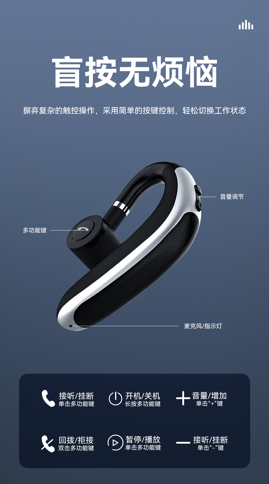 Mai Sheng L02 슈퍼 롱 대기 빠른 충전 비즈니스 자동차 무선 블루투스 헤드셋 5.0 귀에 매달려 달리기스토어 가기