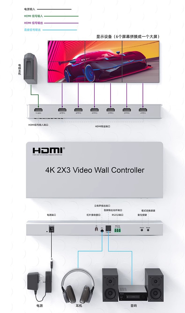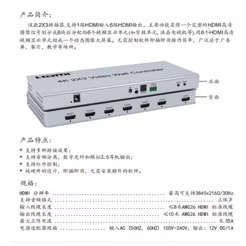 4K HD HDMI 비디오 접합 화면 컨트롤러 2x3 LCD TV 접합 상자 접합 큰 그림