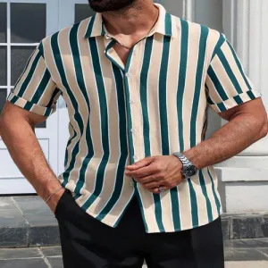 아마존 새로운 패션 남성 반팔 줄무늬 옷깃 셔츠 봄과 가을 셔츠 소스 공장스토어 가기