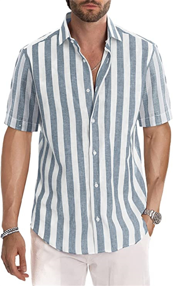 아마존 새로운 패션 남성 반팔 줄무늬 옷깃 셔츠 봄과 가을 셔츠 소스 공장