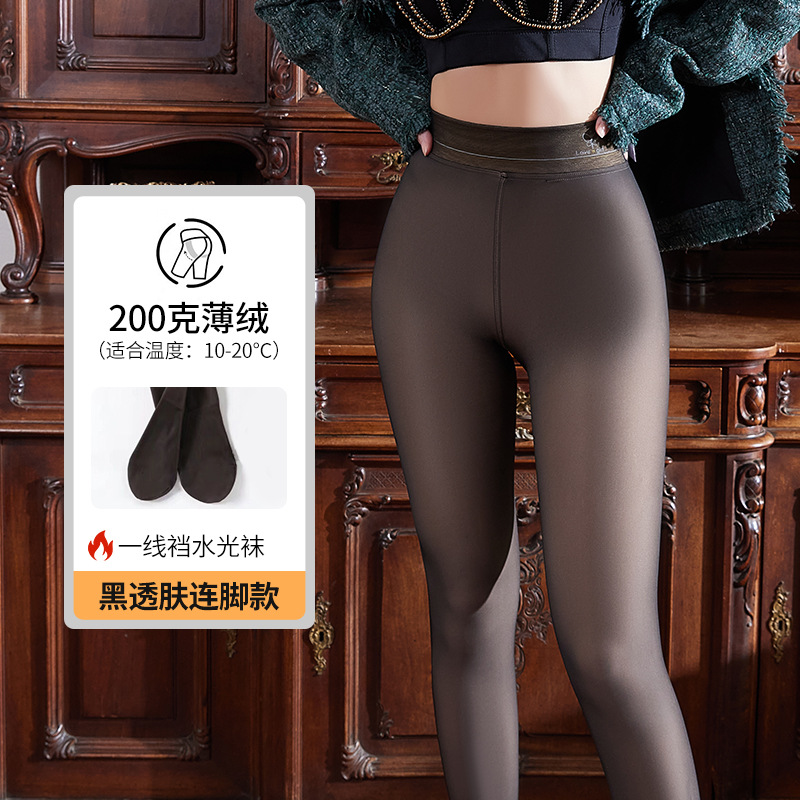 플러스 사이즈 라인 크로트 레깅스 여성을위한 가벼운 다리 아티팩트 가을 및 겨울 벌거 벗은 높은 허리 검은 피부 관통 수광택 양말 기모 팬티 스타킹스토어 가기