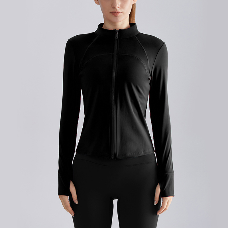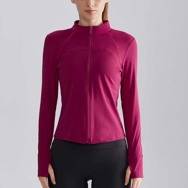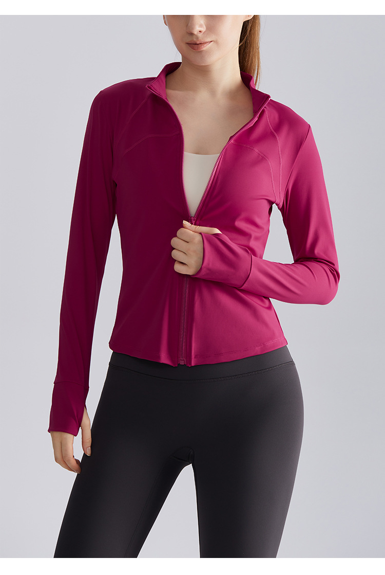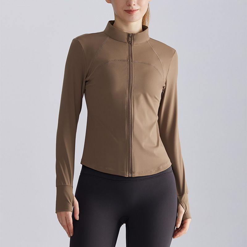 Chuanton 스포츠 재킷 여성 가을 및 겨울 외부 슬림 핏 수직 칼라 탑 항균 기술 지퍼 카디건 요가 재킷 여성
