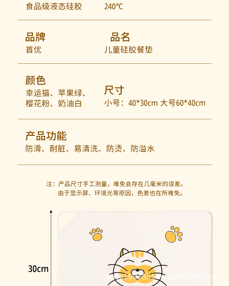어린이 Placemat 초등학교 학생 특수 방수 및 내유성 세탁 유아식 학년 실리콘 점심 매트 테이블 매트 단열 매트스토어 가기