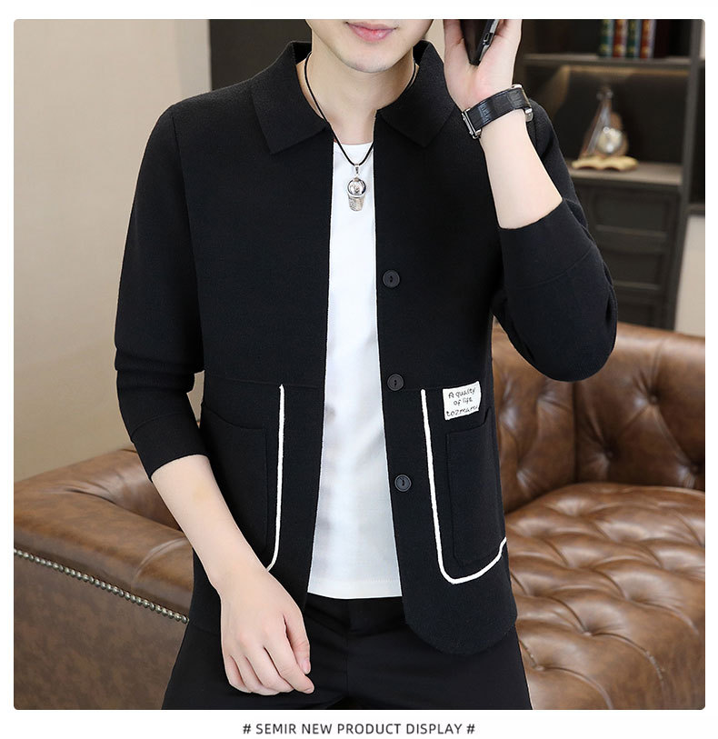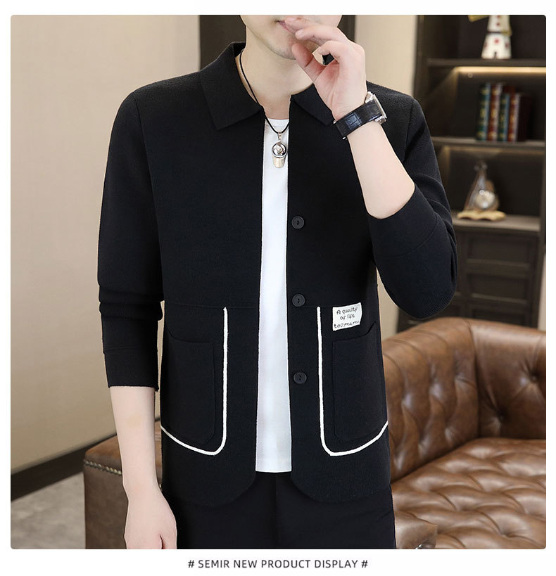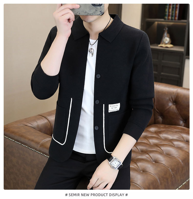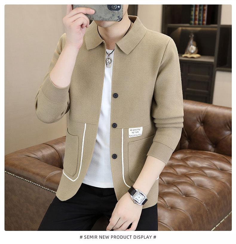 하이 엔드 뉴 니트 카디건 남성 봄과 가을 트렌디 캐주얼 니트 자켓 라이트 럭셔리 핸섬 슬림 핏 남성용 스웨터