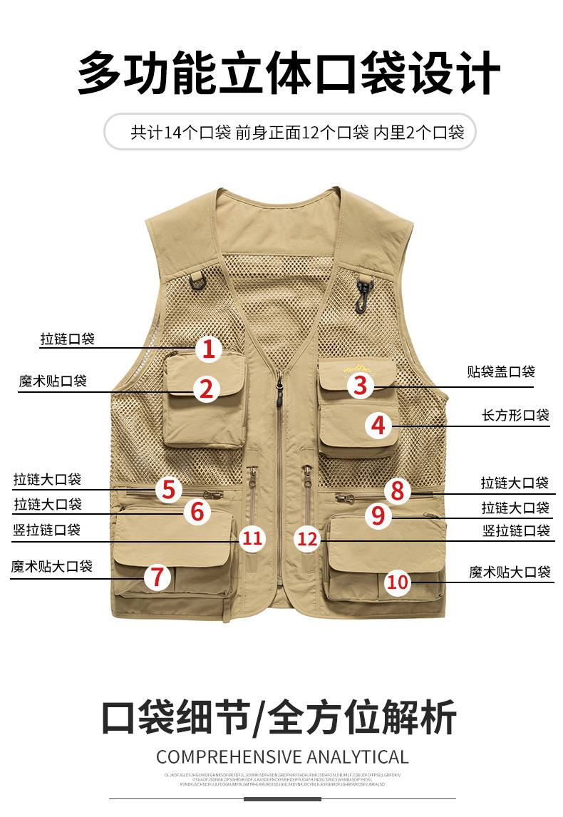 등산용 메쉬 조끼, 다중 포켓 입체형 조끼, 낚시, 사진 촬영, 광고용 남성용 민소매 조끼 9016 작업복스토어 가기