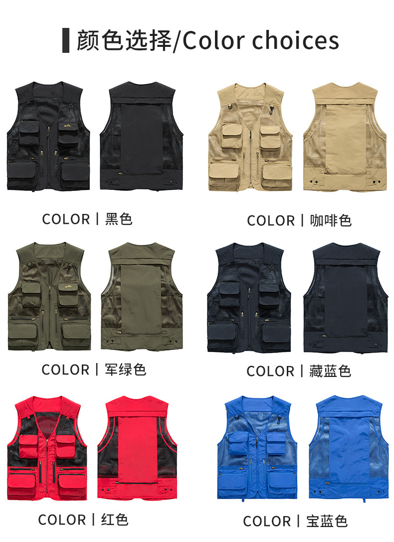 등산용 메쉬 조끼, 다중 포켓 입체형 조끼, 낚시, 사진 촬영, 광고용 남성용 민소매 조끼 9016 작업복