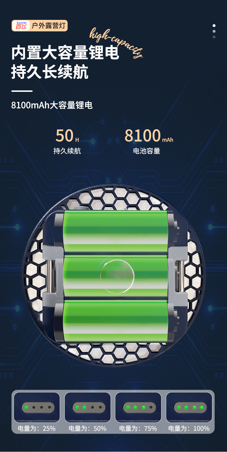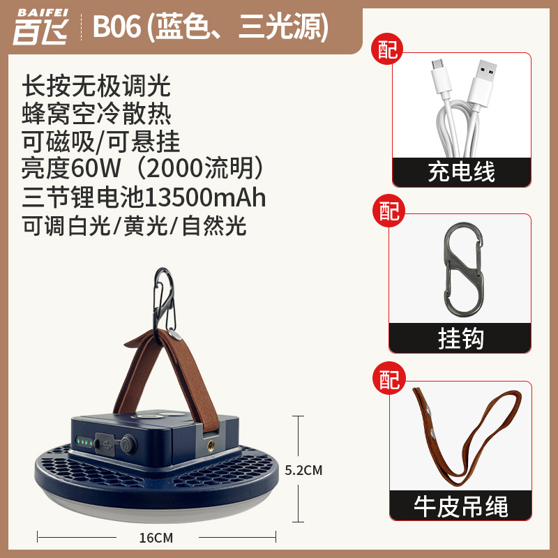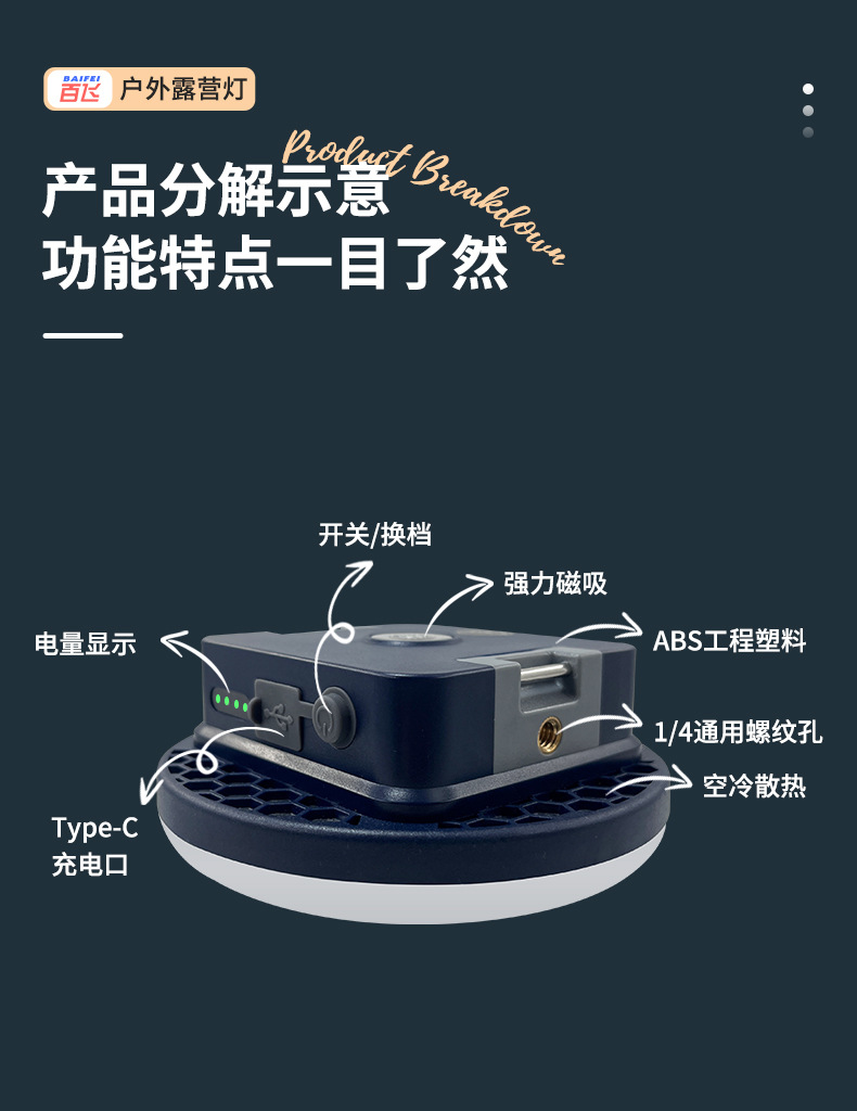 맞춤형 자기 흡입 방수 캠핑 램프, 매우 긴 배터리 수명, 충전식 야외 텐트 램프, 매우 밝은 LED 비상 조명스토어 가기