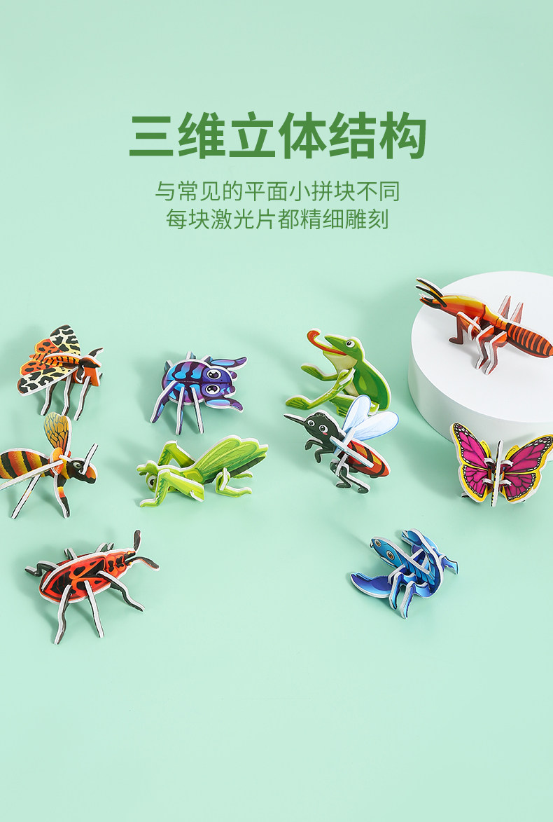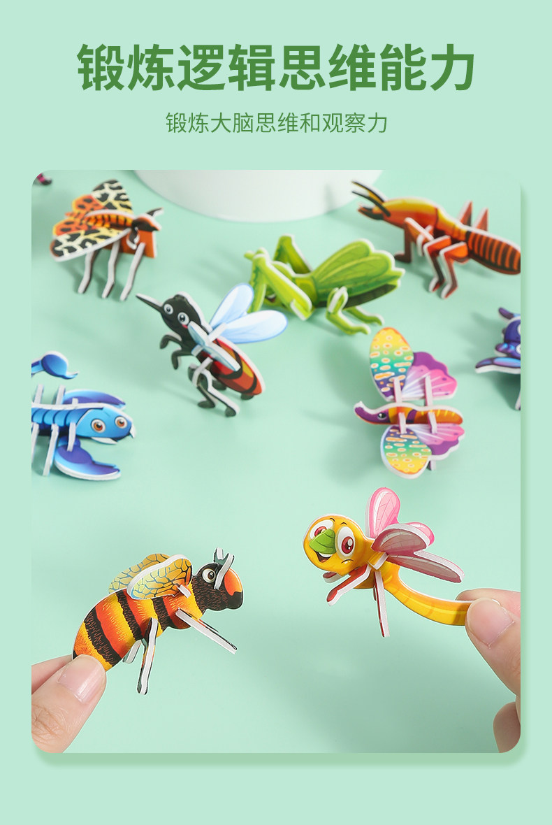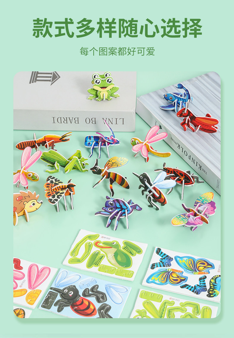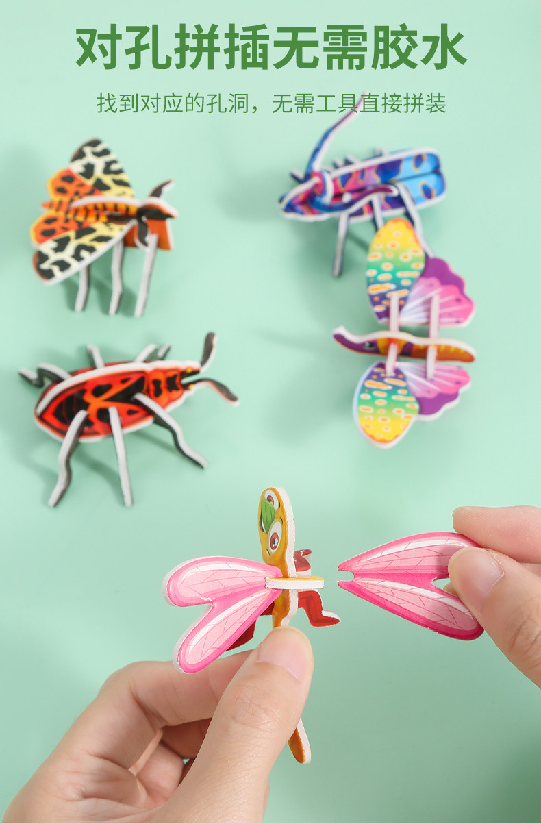 3D 재미 곤충 3 차원 퍼즐 어린이 창조적 인 DIY 장난감 유치원 조기 교육 손으로 조립 퍼즐 카드스토어 가기