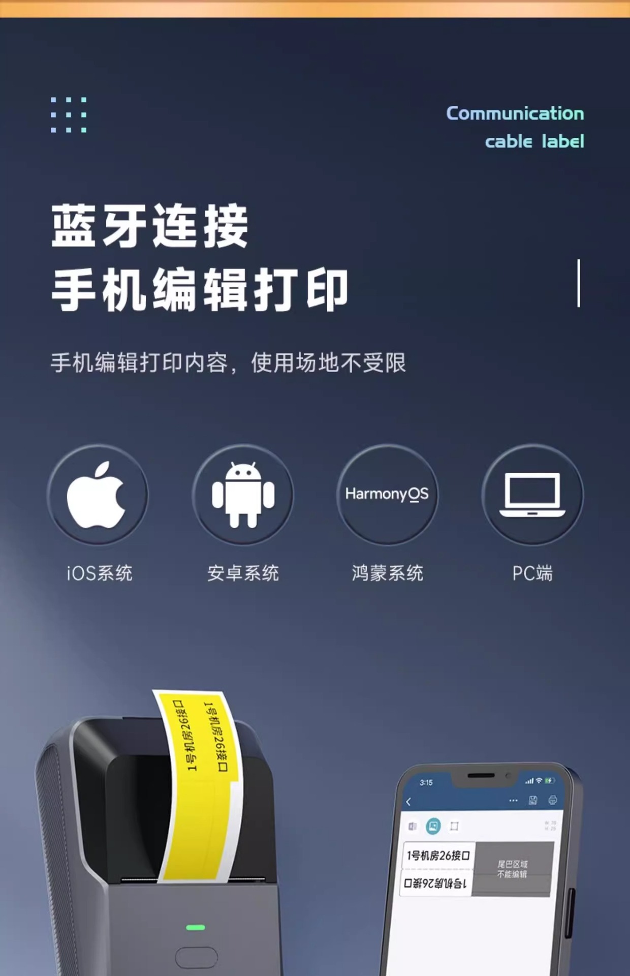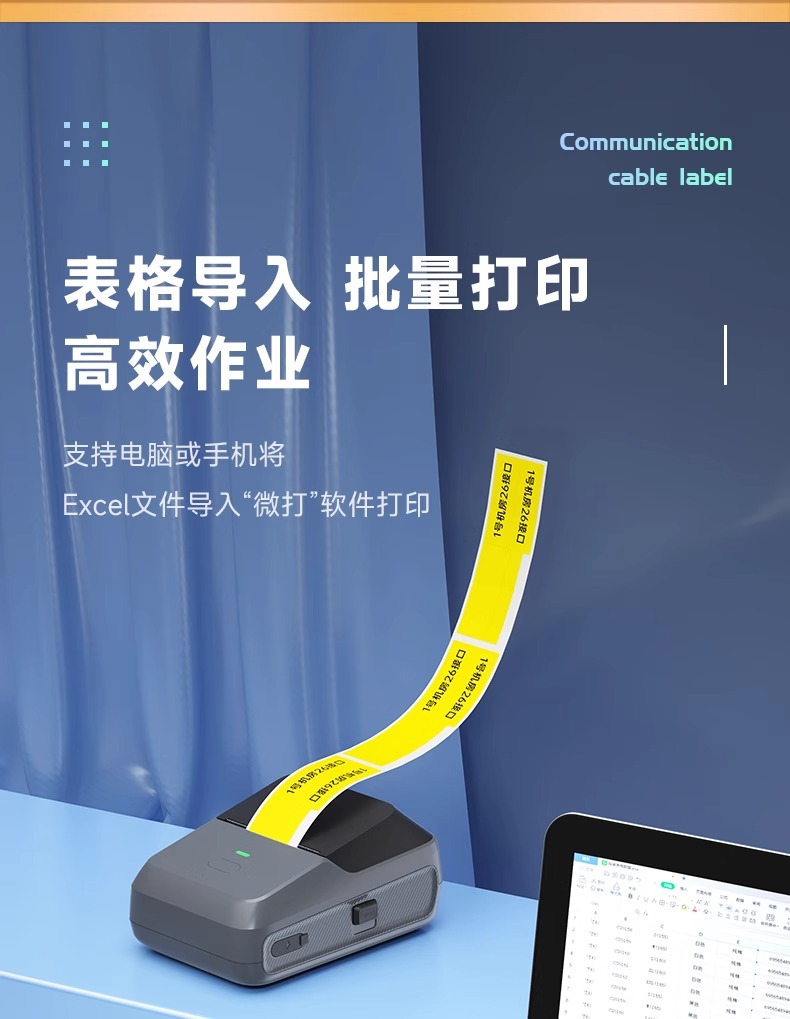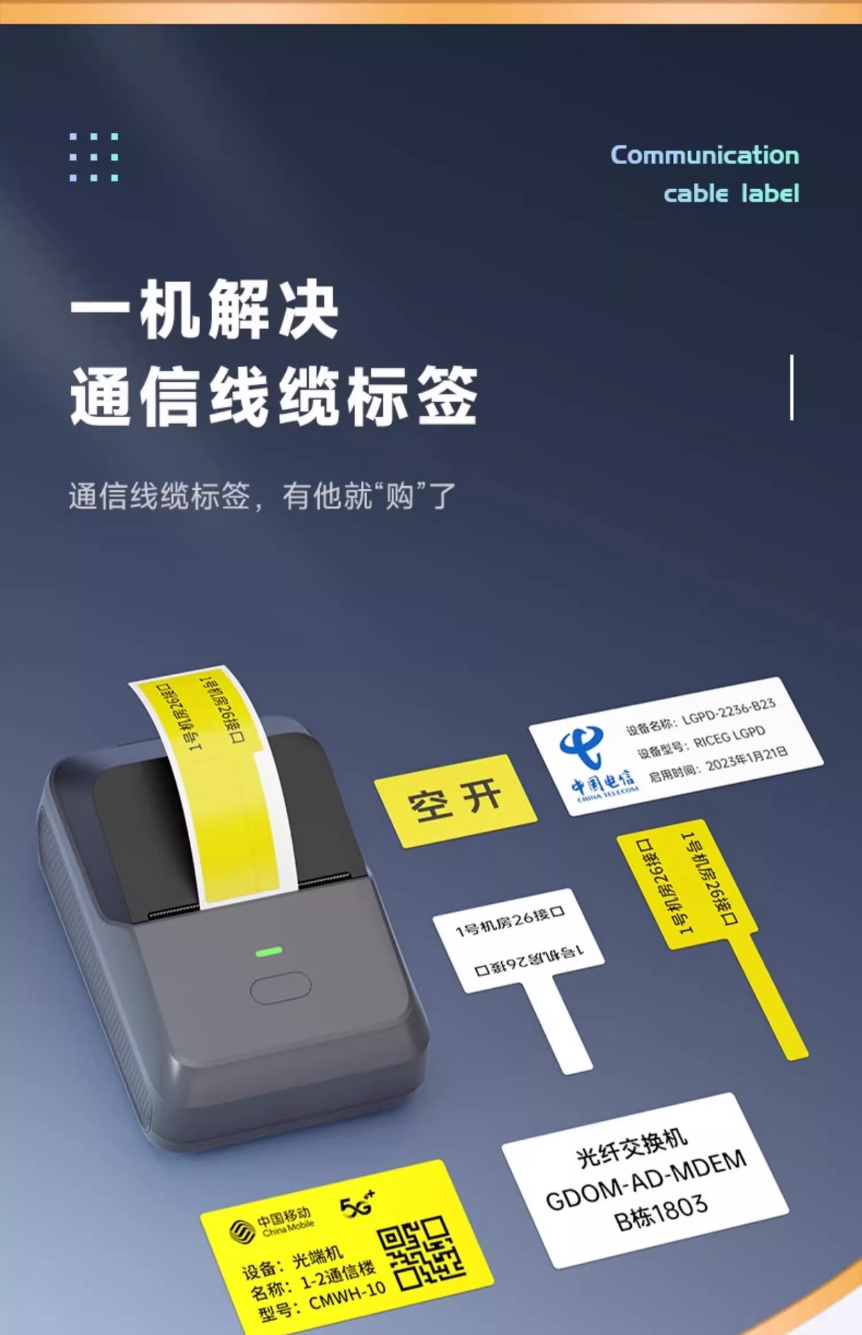 De Tong P2 통신 룸 케이블 라벨 프린터 휴대용 소형 휴대용 모바일 광섬유 P/T 나이프 유형