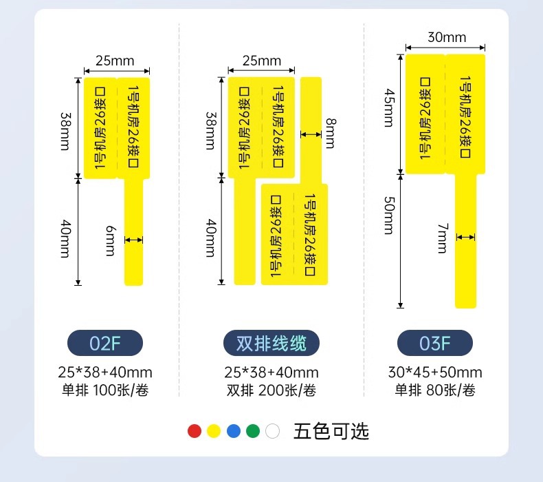 • 조합 패키지 [P2+1 롤 흰색 공백 + 1 롤 노란색 이중 행 케이블 라벨]