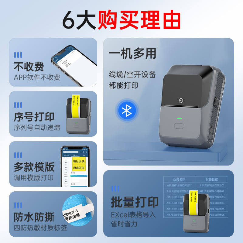 De Tong P2 통신 룸 케이블 라벨 프린터 휴대용 소형 휴대용 모바일 광섬유 P/T 나이프 유형스토어 가기
